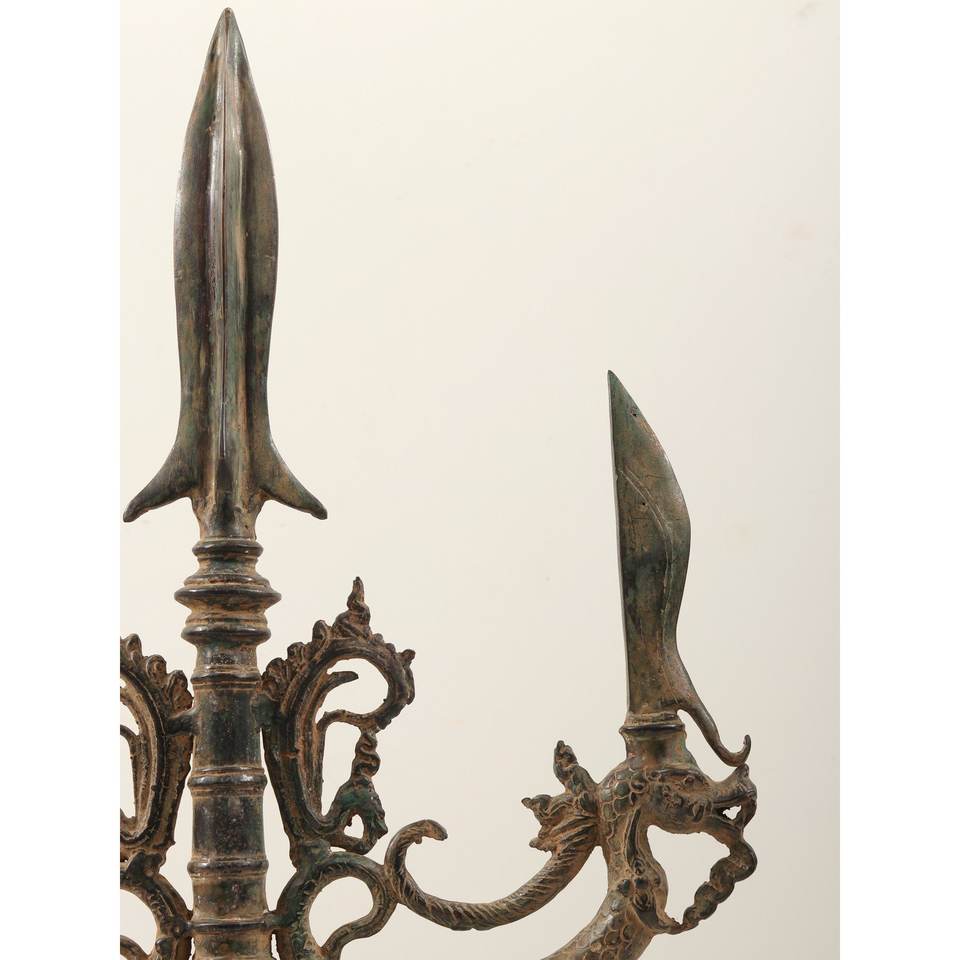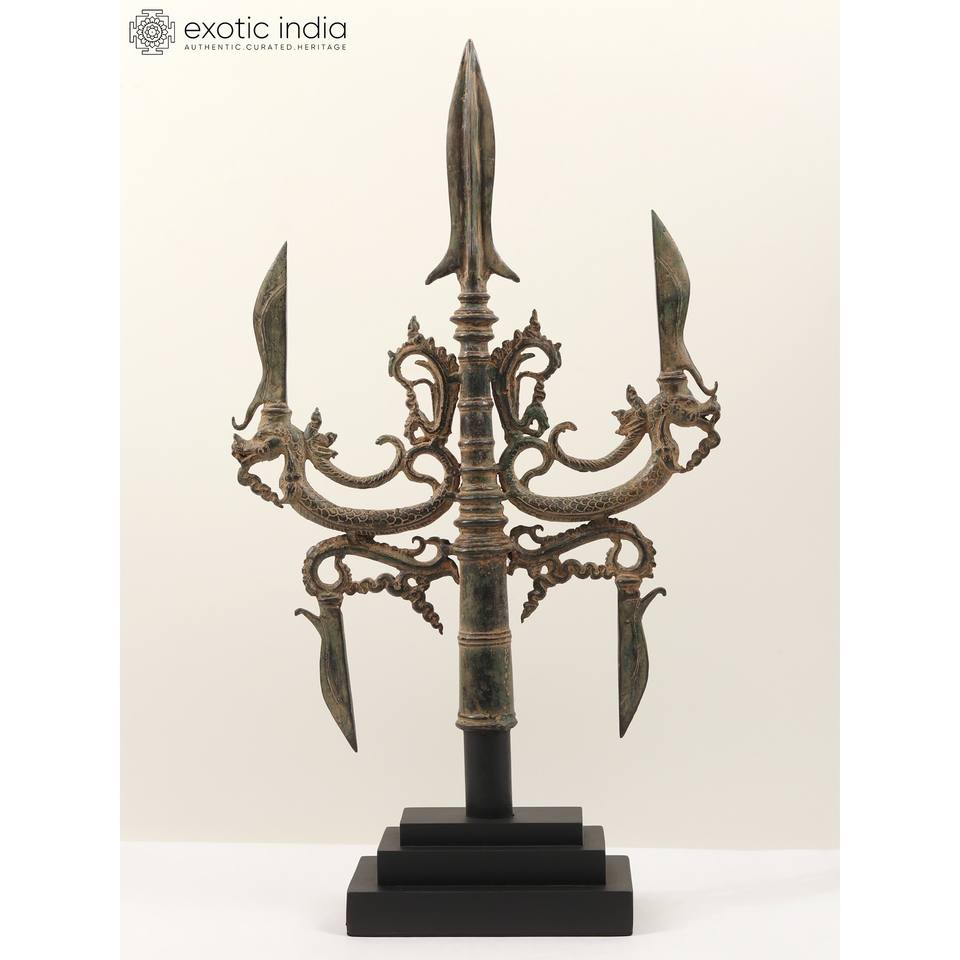 รูปปั้นตรีศูลทองเหลืองขนาด25นิ้วพร้อมฐานไม้รูปปั้นอาวุธศักดิ์สิทธิ์ของลอร์ดพระอิศวร