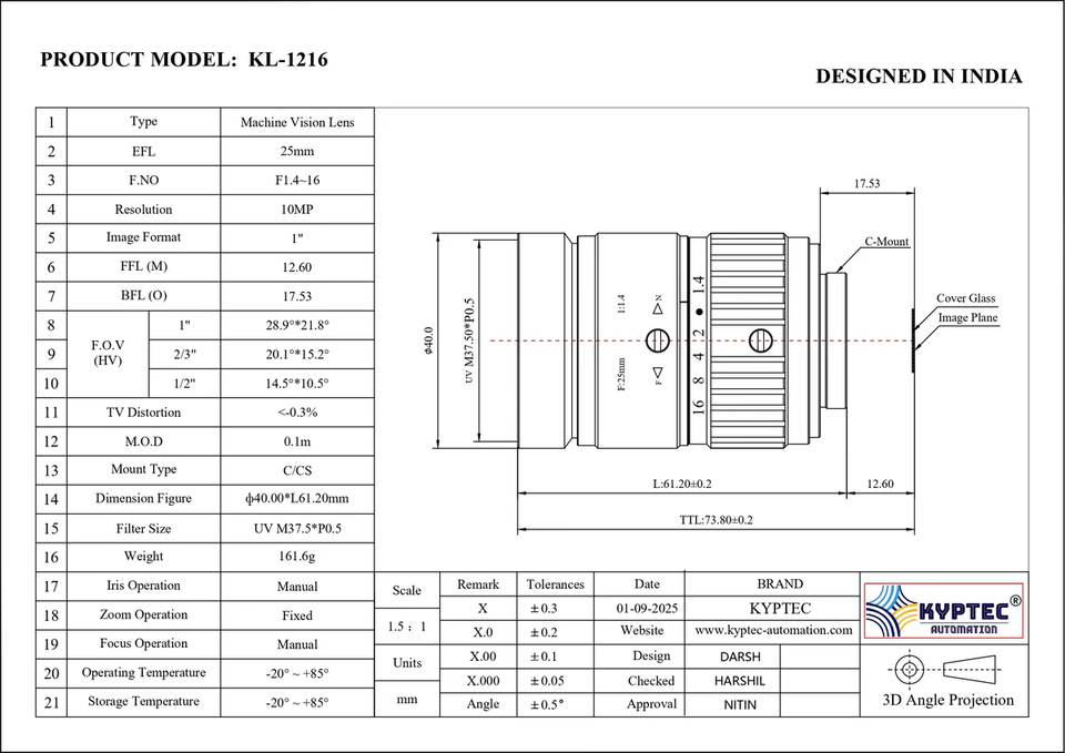 Categories:10 MP LENS SERIES - 1" FORMAT