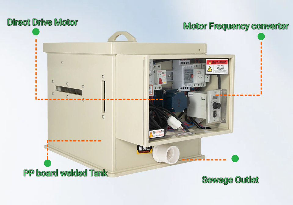 กรองดรัมบ่อขนาดกลาง 25 ไมครอน พร้อมระบบกรองยูวีภายใน 20 ลูกบาศก์เมตร และปั๊ม 20 ตัน สำหรับบ่อปลาคาร์ฟขนาดใหญ่กลางแจ้ง
