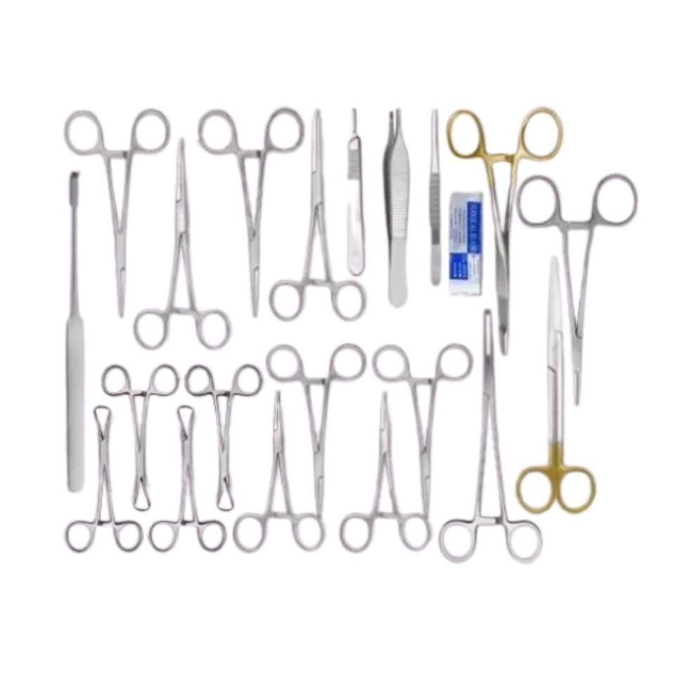 ชุดเครื่องมือผ่าตัดสัตวแพทย์25ชิ้นแบบแมนนวลสำหรับการผ่าตัดแบบใช้เข็มขั้นตอนการผ่าตัดเพื่อรักษาสุนัขและแมว