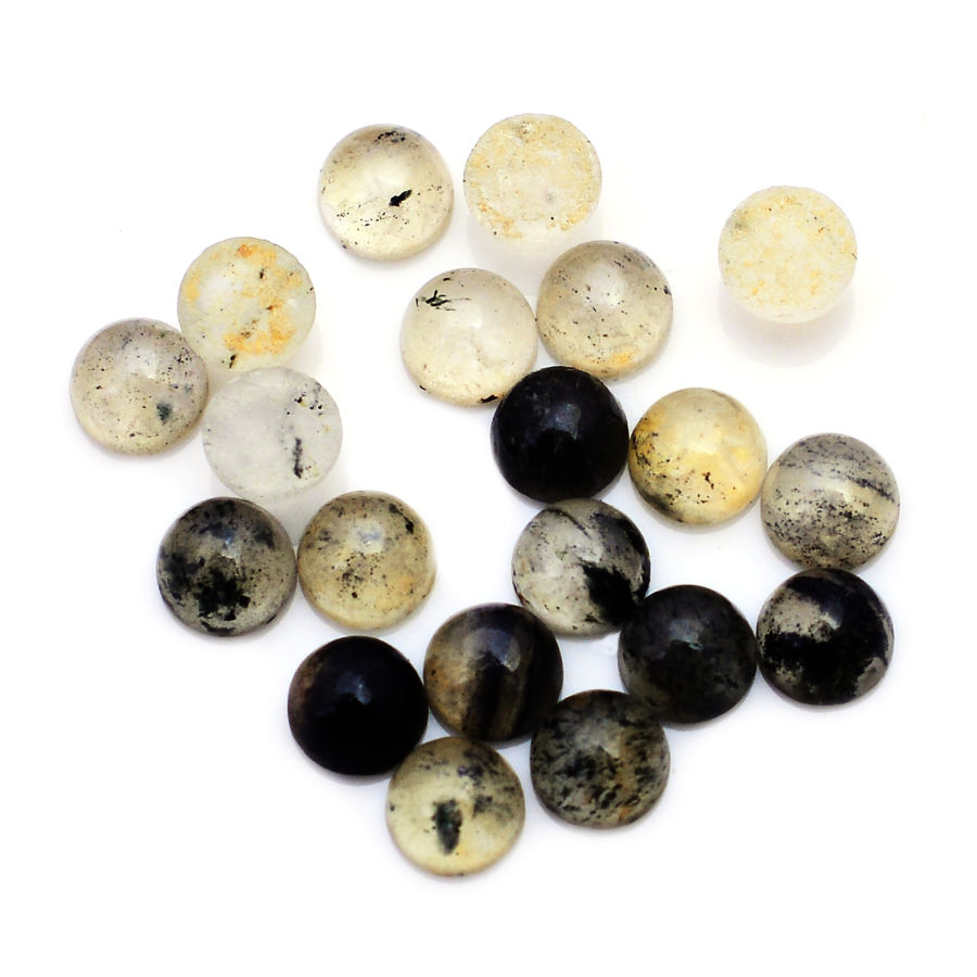 25ชิ้นลายจุดสีดำธรรมชาติหินควอทซ์ทรงกลม4มม. พลอยหนา2.6มม. 7.65 CT Lot Iroc