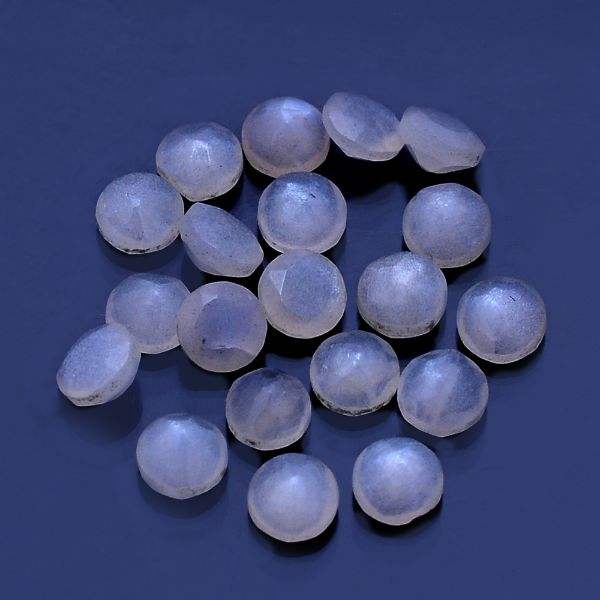 มูนสโตนสีขาวธรรมชาติ 25 ชิ้น ขนาด 3 มม. หนา 2 มม. น้ำหนัก 2.55 กะรัต ขายส่ง Iroc คุณภาพสูง รูปทรงวงกลมเหลี่ยมเพชรพลอย