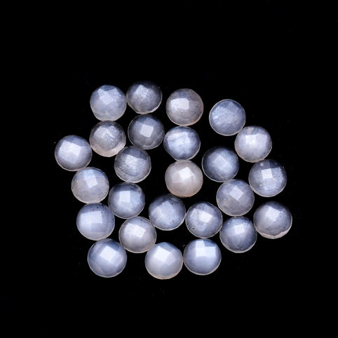 มูนสโตนสีขาว ทรงหลังเบี้ยเหลี่ยม 3 มม., มูนสโตนทรงกลมเจียระไนโรสคัท