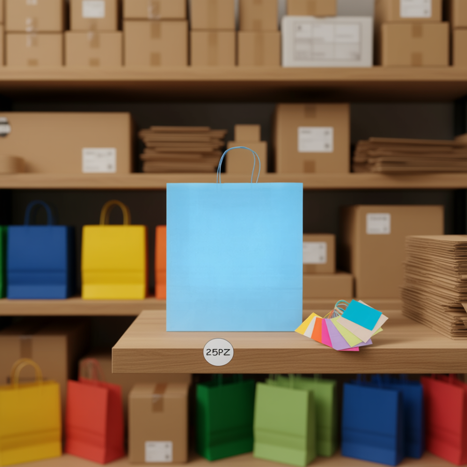 ถุงกระดาษสีฟ้าอ่อน 16x8x21 ซม. ปิดผนึกด้วยพลาสติก ขายส่ง บรรจุภัณฑ์ ของชำ กระดาษคราฟท์ วัสดุรีไซเคิล พิมพ์เฟล็กโซกราฟฟิก