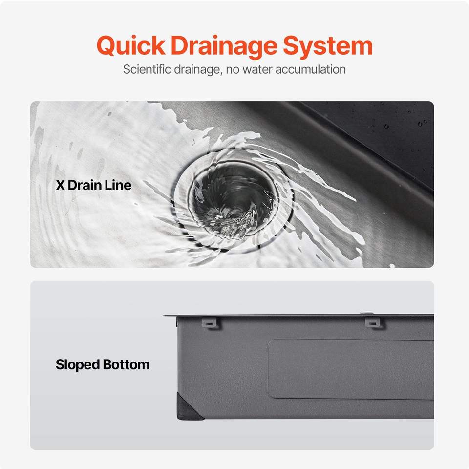 25\" Stainless Steel Kitchen Sink Top Mount Single Bowl Drop-In Basin in Black Color