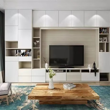 ตู้วางทีวีไม้เนื้อแข็งสั่งทำพิเศษ อายุ 25 ปี ดีไซน์ทันสมัย สำหรับห้องนั่งเล่น พร้อมแผงตกแต่ง เหมาะสำหรับอพาร์ทเมนต์และโรงแรม