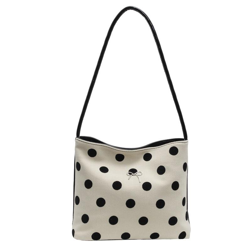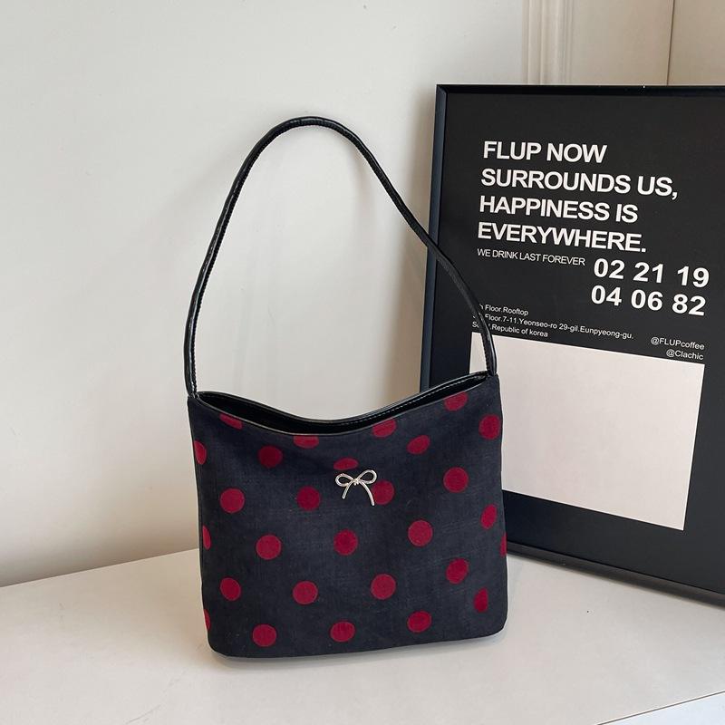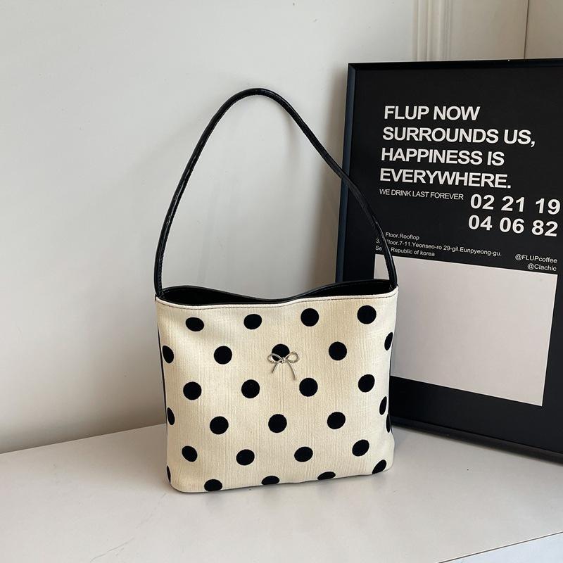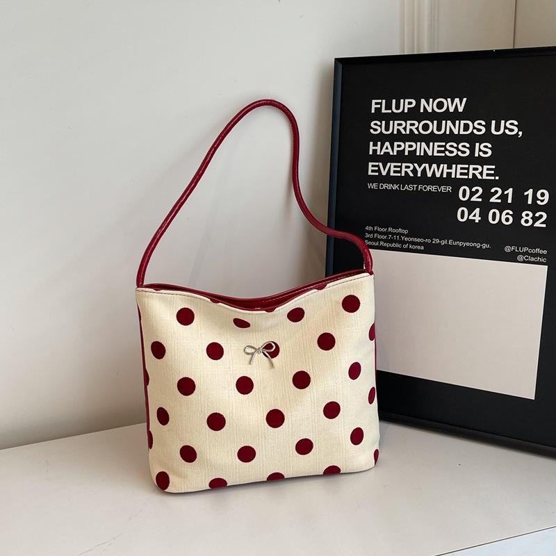 กระเป๋าสะพายไหล่แฟชั่นลายจุดแบบใหม่ขายดี25ปีประดับโบว์กระเป๋าถือสวยงามของผู้หญิง