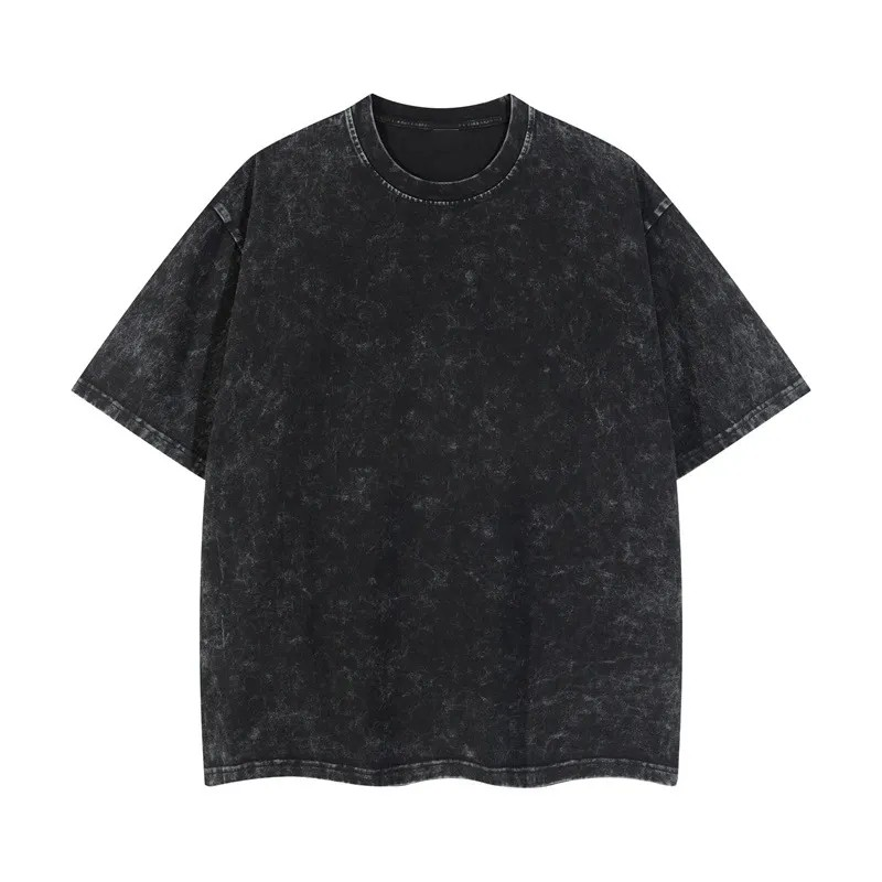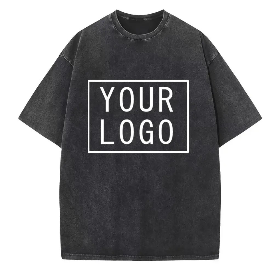 220 GSM Heavyweight Printed Hip Hop Vintage Mineral Wash Black T-Shirt 100% Cotton Oversized Loose Fit Acid Wash Men's T-shirts