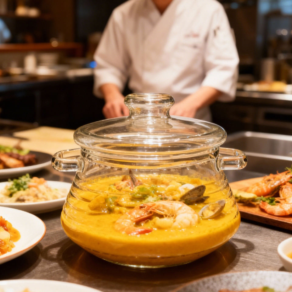 หม้อแก้วทำอาหารทำมือ ขนาด 2500 มล. 3000 มล. คุณภาพสูง ทำจากแก้วบอโรซิลิเกต สำหรับใช้ในเชิงพาณิชย์ ภาชนะใสเพื่อสุขภาพ เหมาะสำหรับร้านอาหารและโรงแรม