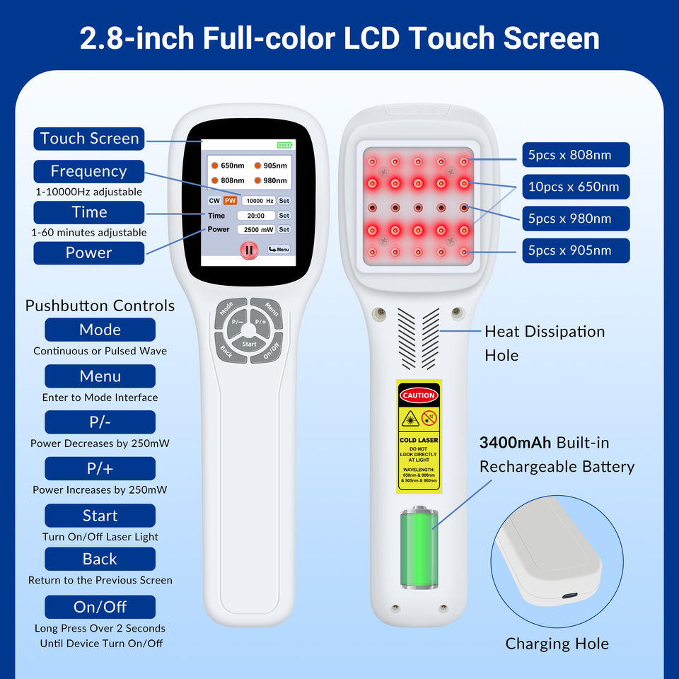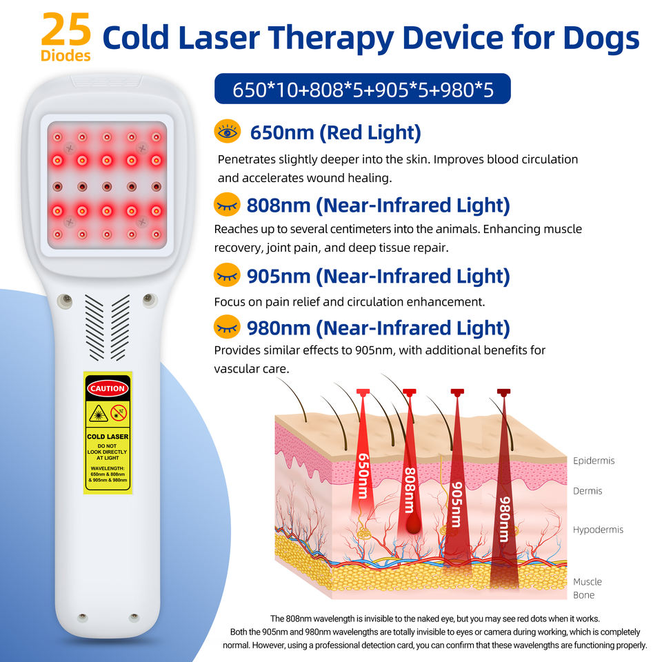 เครื่องเลเซอร์อินฟราเรดเย็น 2500 มิลลิวัตต์ สำหรับสัตว์เลี้ยงหลังการผ่าตัด บรรเทาอาการเอ็นข้อศอกฉีกขาด หมอนรองกระดูกเคลื่อน และฟื้นฟูอย่างรวดเร็ว