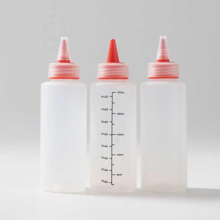 ขวดบีบพลาสติกทรงกระบอก PE ขนาด 250 มล. 8 ออนซ์ แบบเติมได้ สำหรับใช้ในครัวเรือน ใส่ซอส ซอสมะเขือเทศ น้ำมัน พร้อมฝาเกลียว