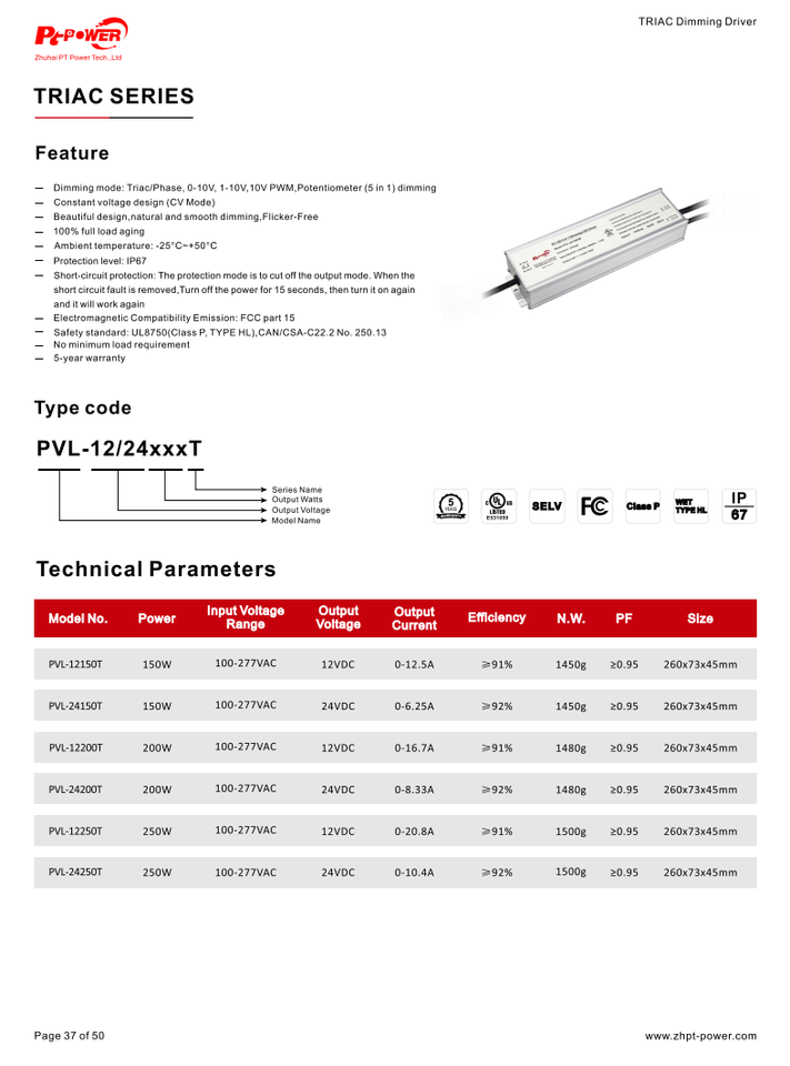 หมายเลขรุ่น:PVL-12-24200T/PV-12-24250T