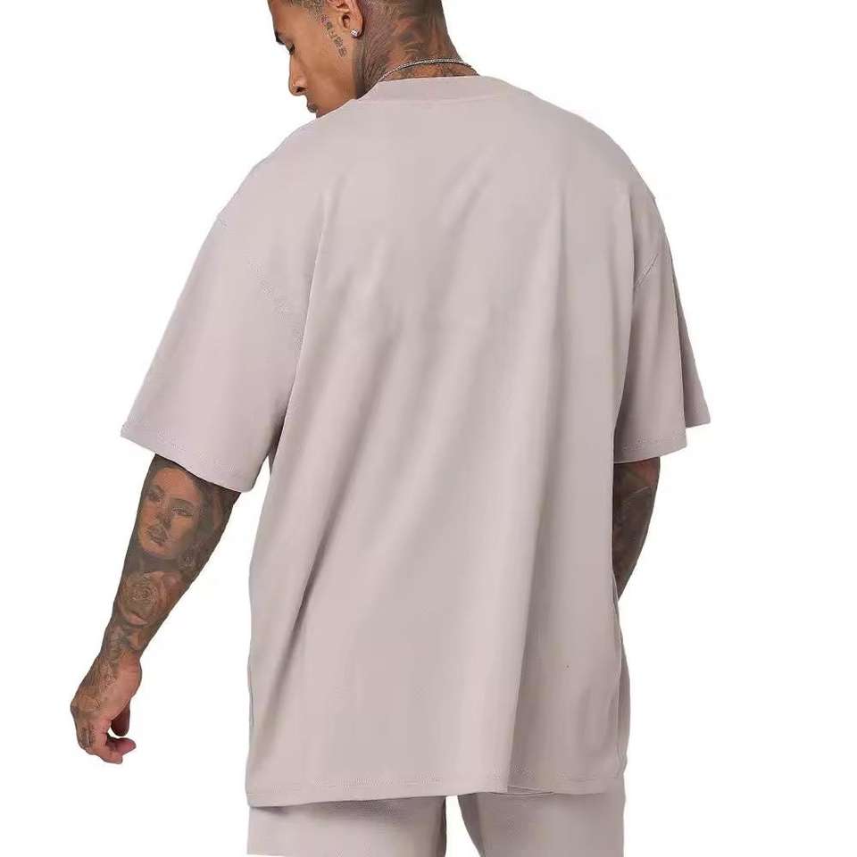 เสื้อยืดโอเวอร์ไซส์ทรงบ็อกซี่ ผ้าคอตตอนหนานุ่ม 250gsm พิมพ์ลายกราฟิก แขนเสื้อแบบดรอปโชว์เดอร์ สไตล์สตรีทแวร์ สำหรับผู้ชาย