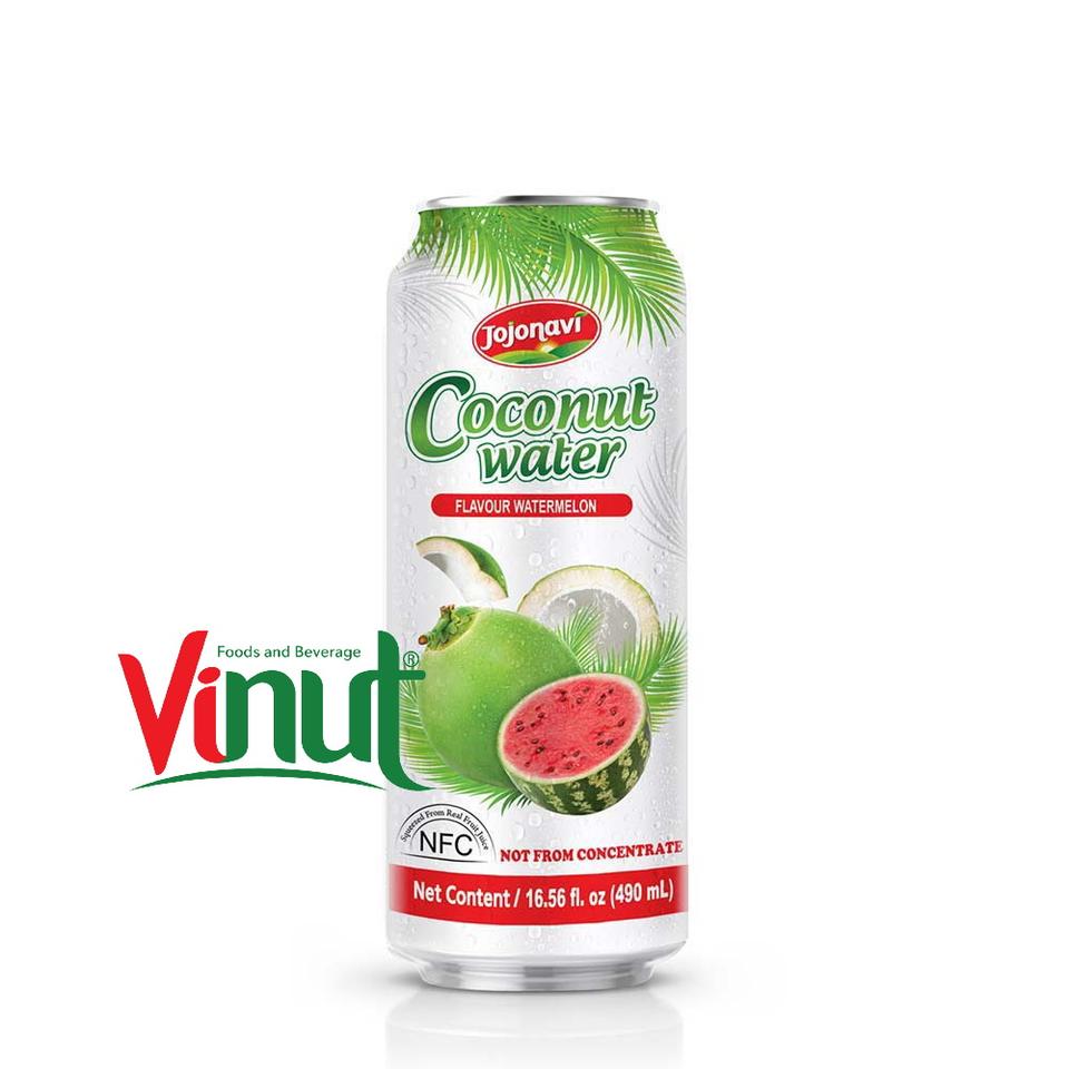น้ำมะพร้าวกระป๋องรสแตงโม ขนาด 250 มล./330 มล. สำหรับออกแบบฉลากแบรนด์ของคุณเอง ผู้จัดจำหน่ายเวียดนาม อายุการเก็บรักษา 24 เดือน