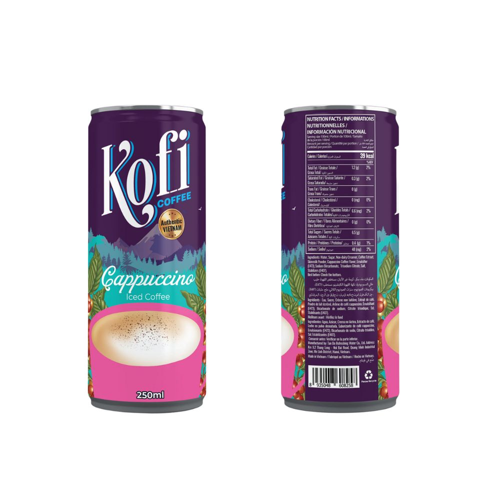 กาแฟเย็นจากเวียดนาม250มล. พร้อมดื่มคาเฟอีนทอรีนและอินโนซิทอล