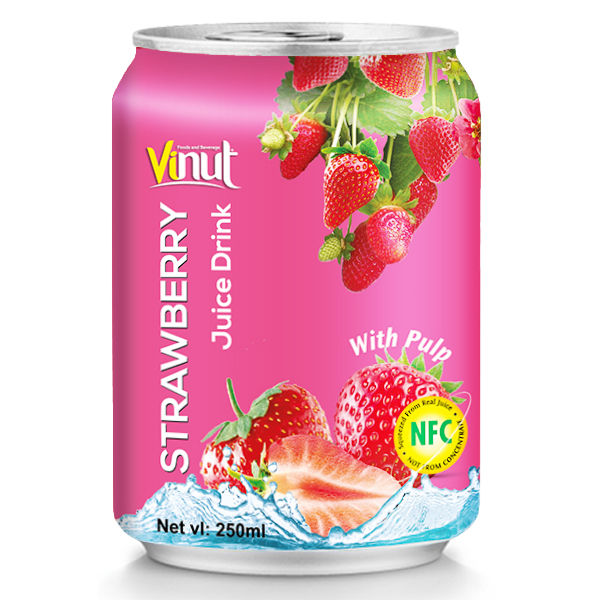น้ำสตรอเบอร์รี่กระป๋อง250มล. น้ำผลไม้แคลอรี่ต่ำสำหรับการพัฒนาสุขภาพหัวใจทารกโดยตรงจากผู้ผลิต