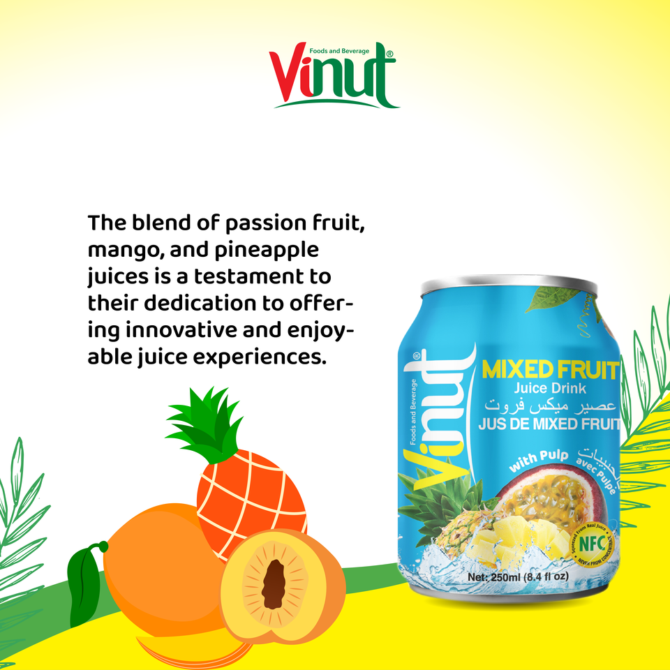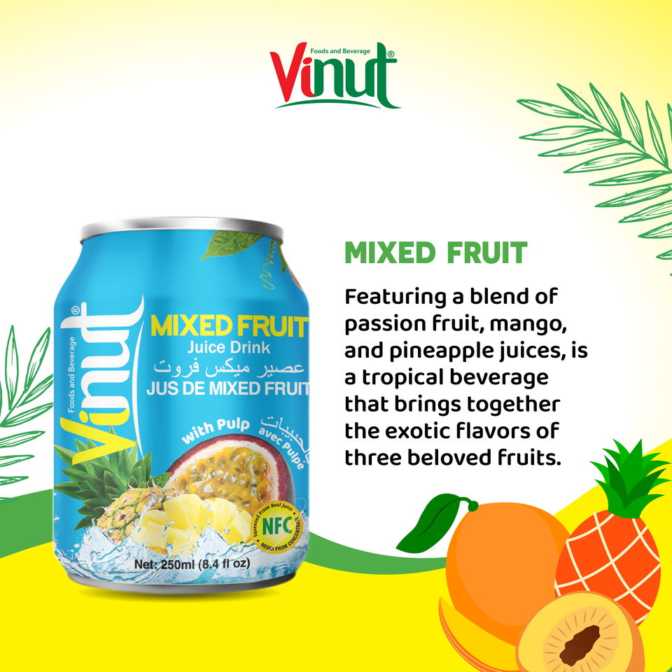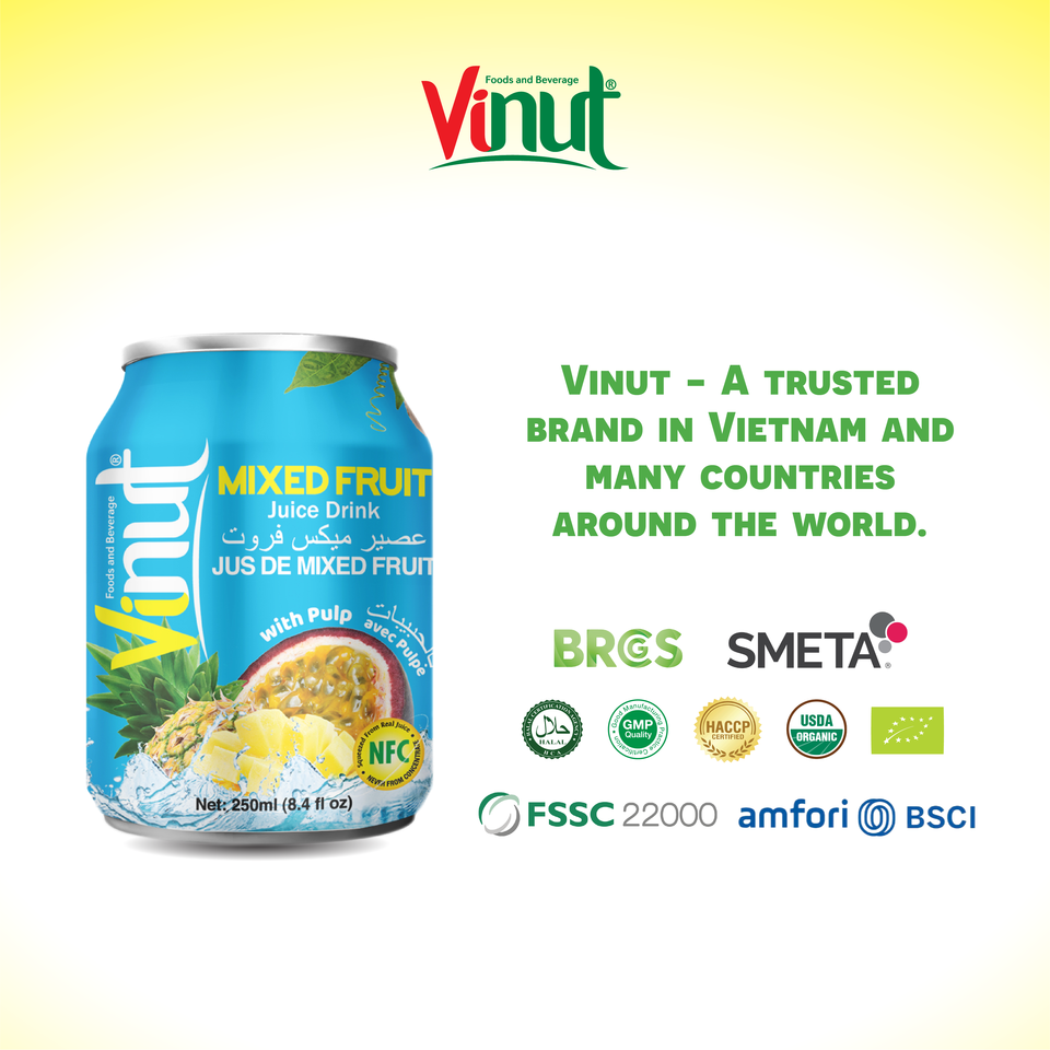เครื่องดื่มผสมน้ำผลไม้เขตร้อน250มล. ผลิตจากเยื่อไม้ผลิตจากโรงงานเวียดนามขายดีน้ำตาล ODM พร้อมส่ง