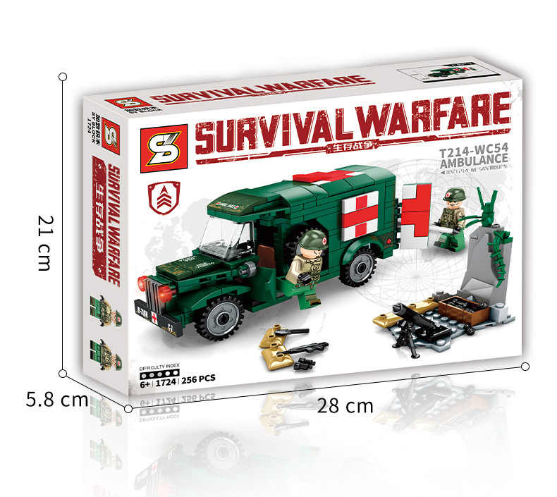 ชุดโมเดลรถพยาบาลทหารเอ็มไพร์เหล็ก256ชิ้น,ชุดโมเดลรถพยาบาลชุดเอาชีวิตรอดสงครามทหาร US ชุดบล็อกก่อสร้างของเล่นพลาสติก