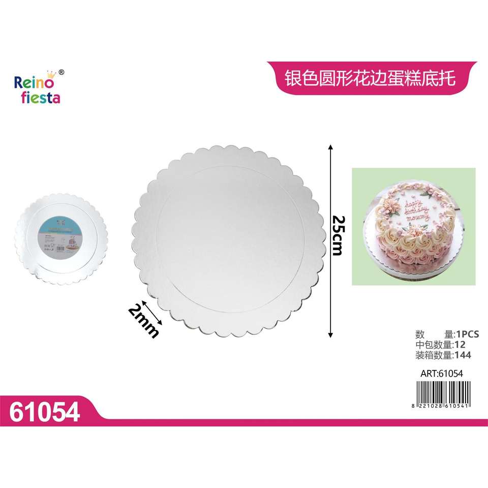 บอร์ดเค้กสีเงิน25ซม. มีดีไซน์นูนและขอบหอยเชลล์หนา2มม. อุปกรณ์ตกแต่งเค้ก1ชิ้น
