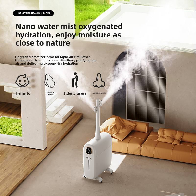 เครื่องเพิ่มความชื้นในอากาศแบบอัลตราโซนิก 25 ลิตร พร้อมไอออนซิลเวอร์ ป้องกันแบคทีเรีย ล้อเลื่อนเคลื่อนย้ายสะดวก โหมดพักผ่อนเพียงคลิกเดียว ระบบพ่นไอน้ำคู่ เสียงเงียบ <36 เดซิเบล เหมาะสำหรับโรงแรมและใช้ในบ้าน