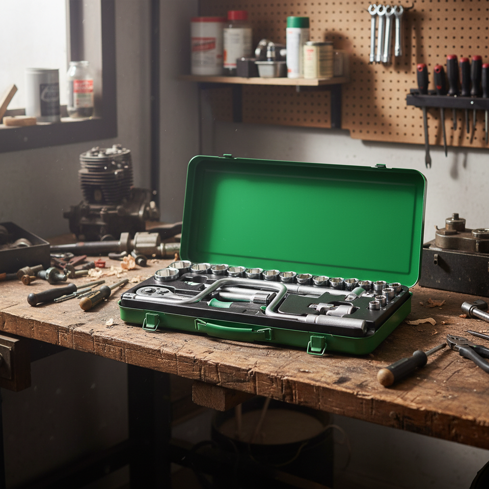 ชุดเครื่องมือซ็อกเก็ตเหล็ก CV ขนาด 1/2 นิ้ว แบบใช้มือ 25 ชิ้น พร้อมด้ามจับแบบมีความเร็วสูง กล่องแข็ง ชุดเครื่องมือ OEM