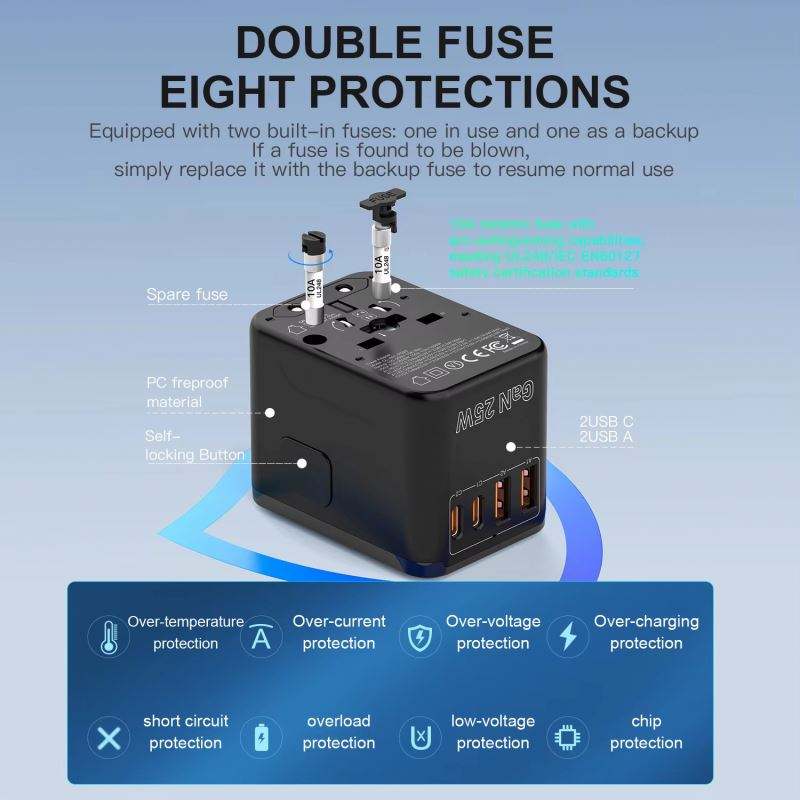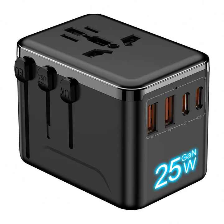 อะแดปเตอร์แปลงไฟอเนกประสงค์ 25W ชาร์จเร็ว USB และ Type C สำหรับเดินทาง ปลั๊กชาร์จติดผนัง อุปกรณ์แปลงไฟอเนกประสงค์ 25W