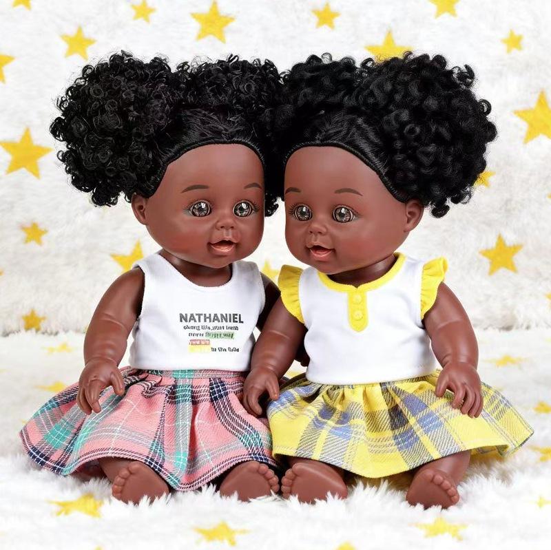 ตุ๊กตาเด็กเกิดใหม่ผิวสีดำ แอฟริกันอเมริกัน ขนาด 25 ซม. ทำจากซิลิโคนไวนิลทั้งตัว ของเล่นเด็กผู้หญิง ตุ๊กตาเด็กเกิดใหม่ซิลิโคนสีดำ