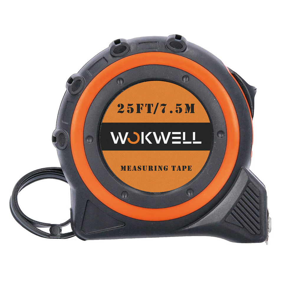 ตลับเมตรแบบมีตัวล็อคอัตโนมัติ ความสูง 25 ฟุต 7.5 เมตร พร้อมใบมีดเหล็ก ทนทานต่อแรงกระแทก วัสดุพลาสติกป้องกัน หน่วยเป็นเมตรและนิ้ว