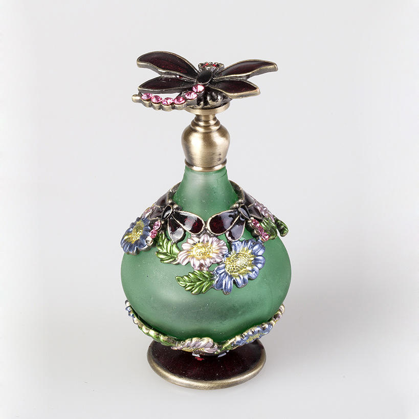 ขวดโลหะเคลือบรูปดอกทานตะวันและแมลงปอโบราณขนาด25มล. ขวดแก้วเปล่าสำหรับใส่น้ำหอมน้ำมันหอมระเหย