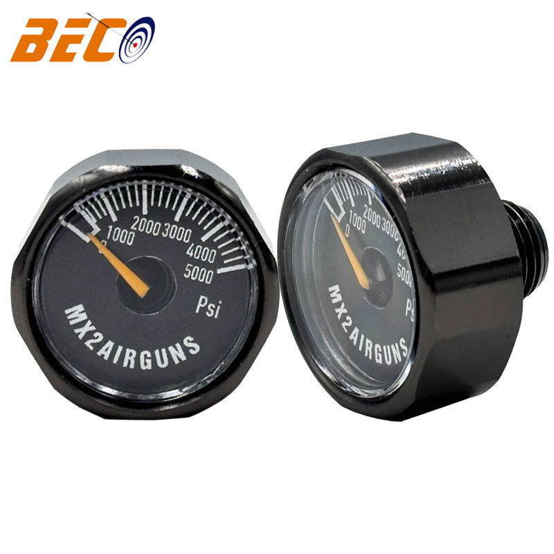 เกจวัดแรงดันขนาดเล็ก 25 มม. 5000 ปอนด์ต่อตารางนิ้ว M10*1 ไมโครเกจ แมนอมิเตอร์ สำหรับเพ้นท์บอล PCP อัดอากาศ