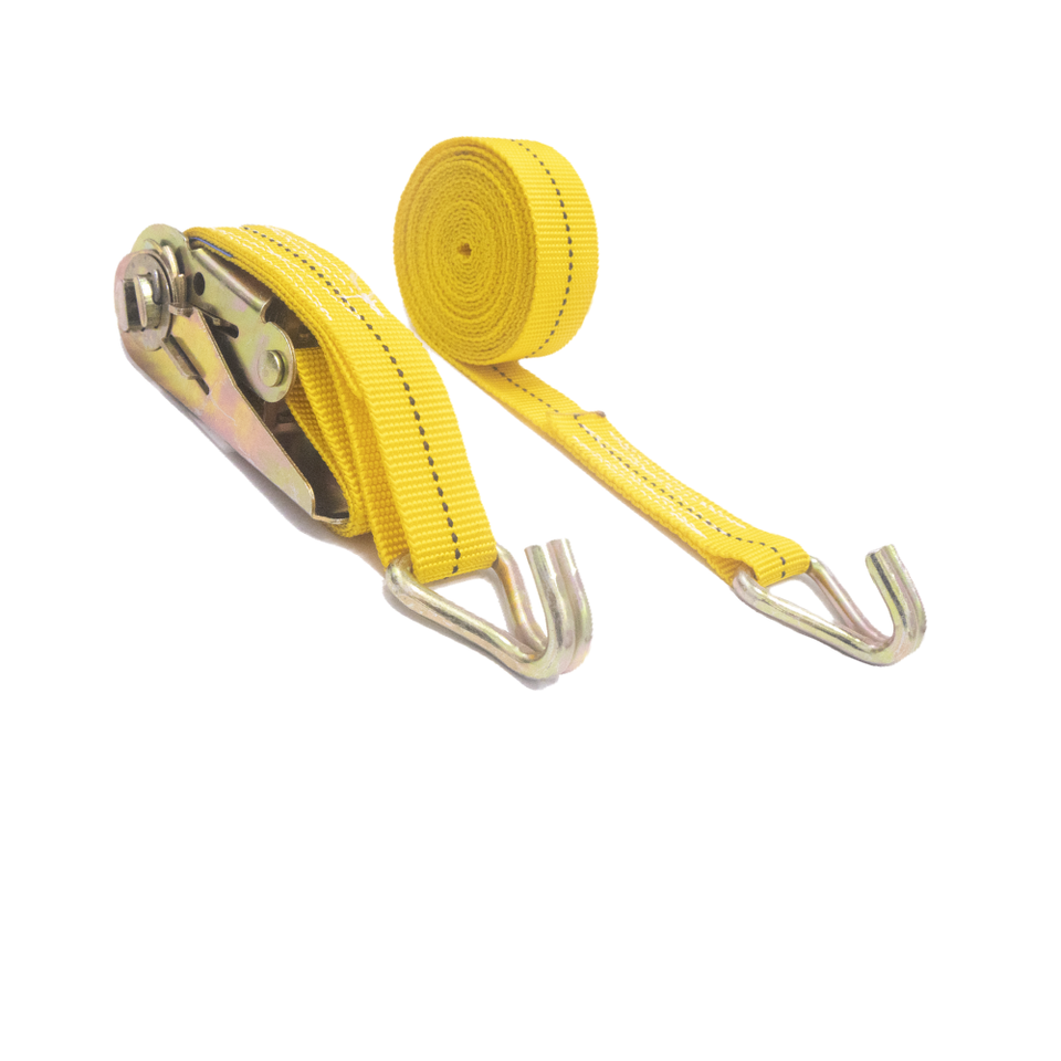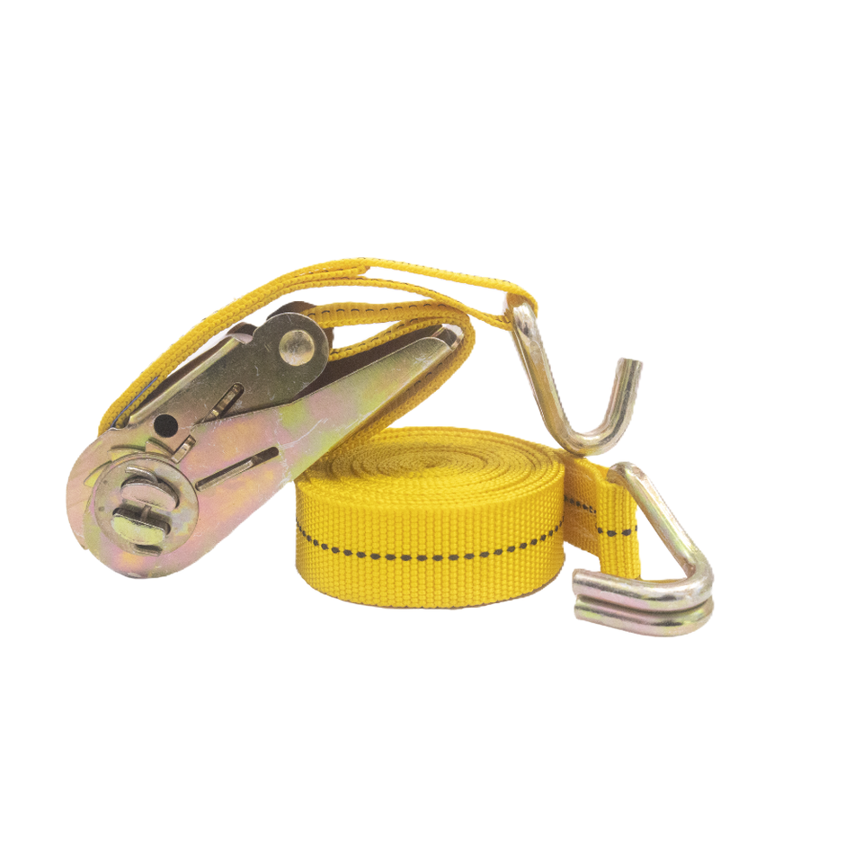 สายพานโพลีเอสเตอร์สีเหลือง25มม. ตะขอแบบคู่รูปตัว J แข็งแรง800กก. สำหรับการจัดการสินค้าที่หนักอย่างปลอดภัย