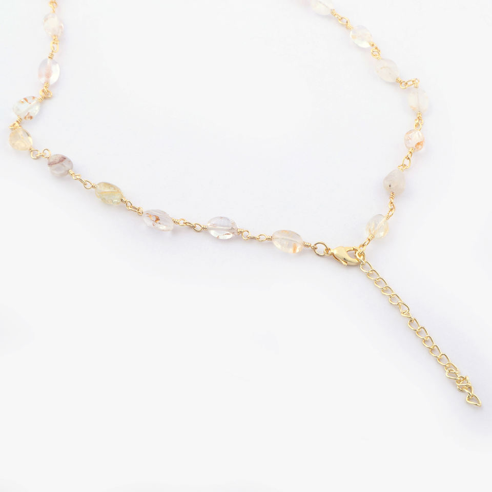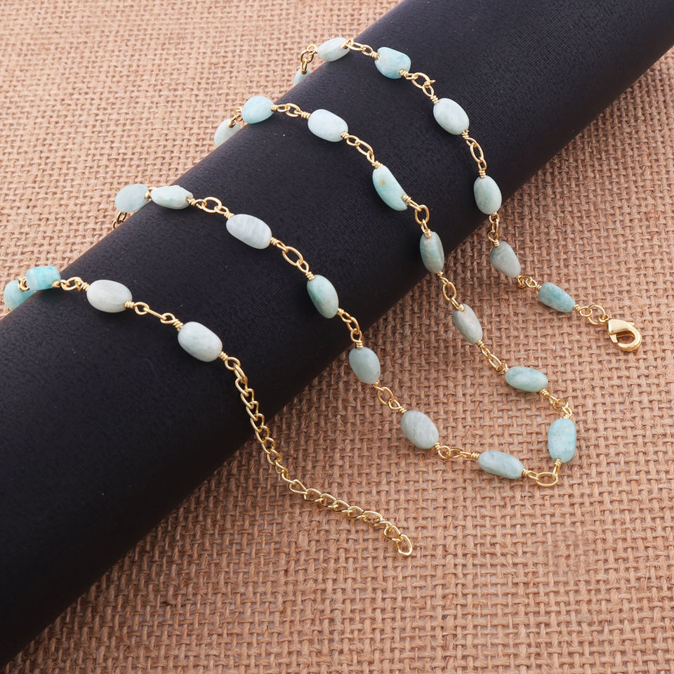 สร้อยคอยาว26นิ้วลูกปัดอะมาโซไนท์ธรรมชาติลูกปัดทองเหลืองชุบทอง18K สร้อยคอโซ่ลูกปัดหนึ่งเส้นเรียบ