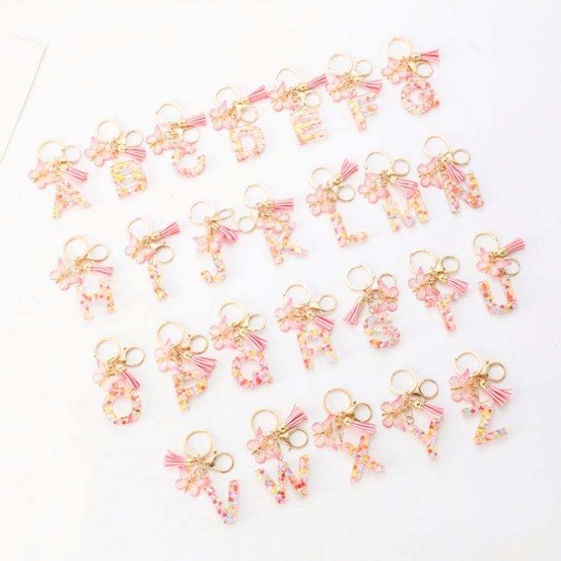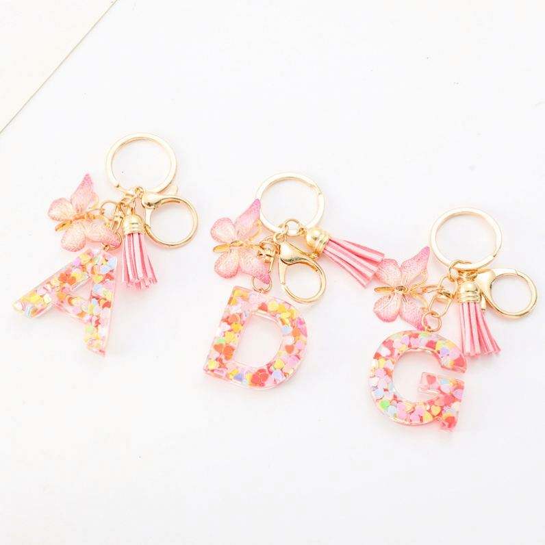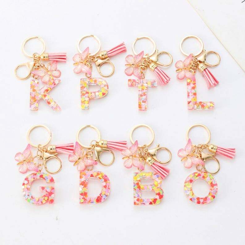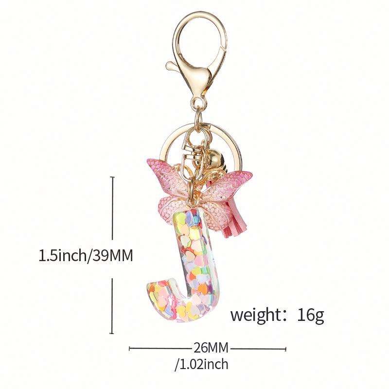 26 Letter Resin Initial Keychain with Tassel Butterfly Pendant Key Ring for Women's Bag Elegant Keychain Accessory