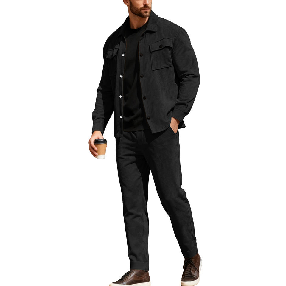 26 ชุดทำงานผู้ชายฤดูใบไม้ผลิฤดูใบไม้ร่วงลำลองเสื้อแจ็คเก็ตหนังกลับกางเกงผ้าฝ้ายผสมสวมใส่ทุกวันสไตล์ลายพราง