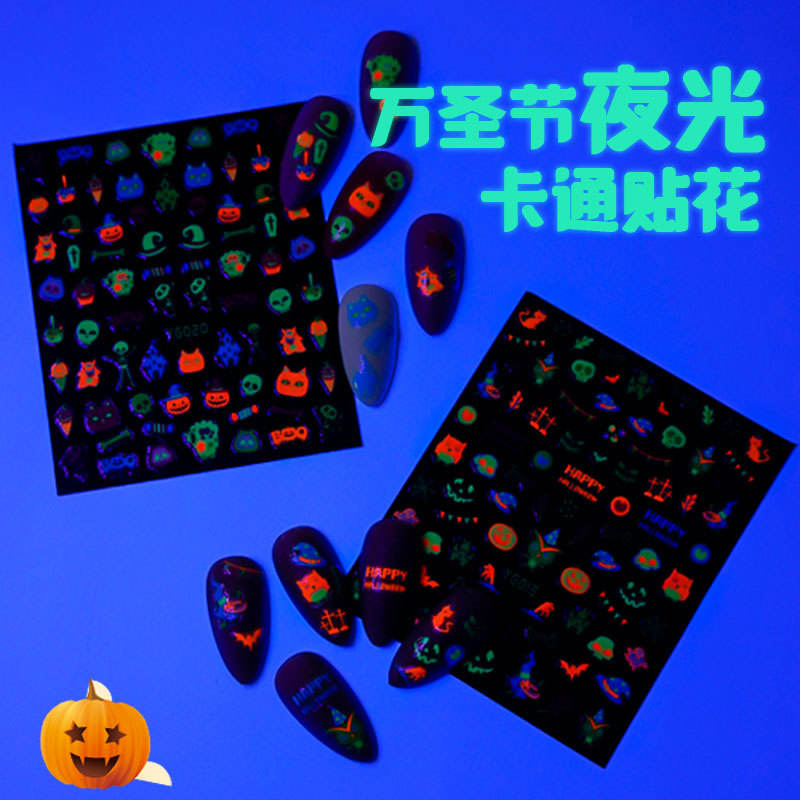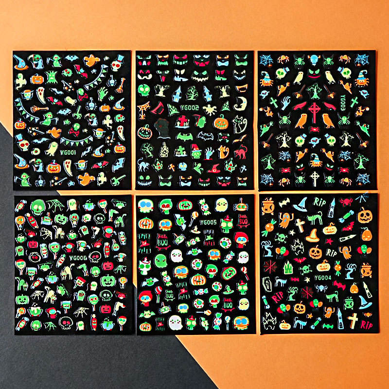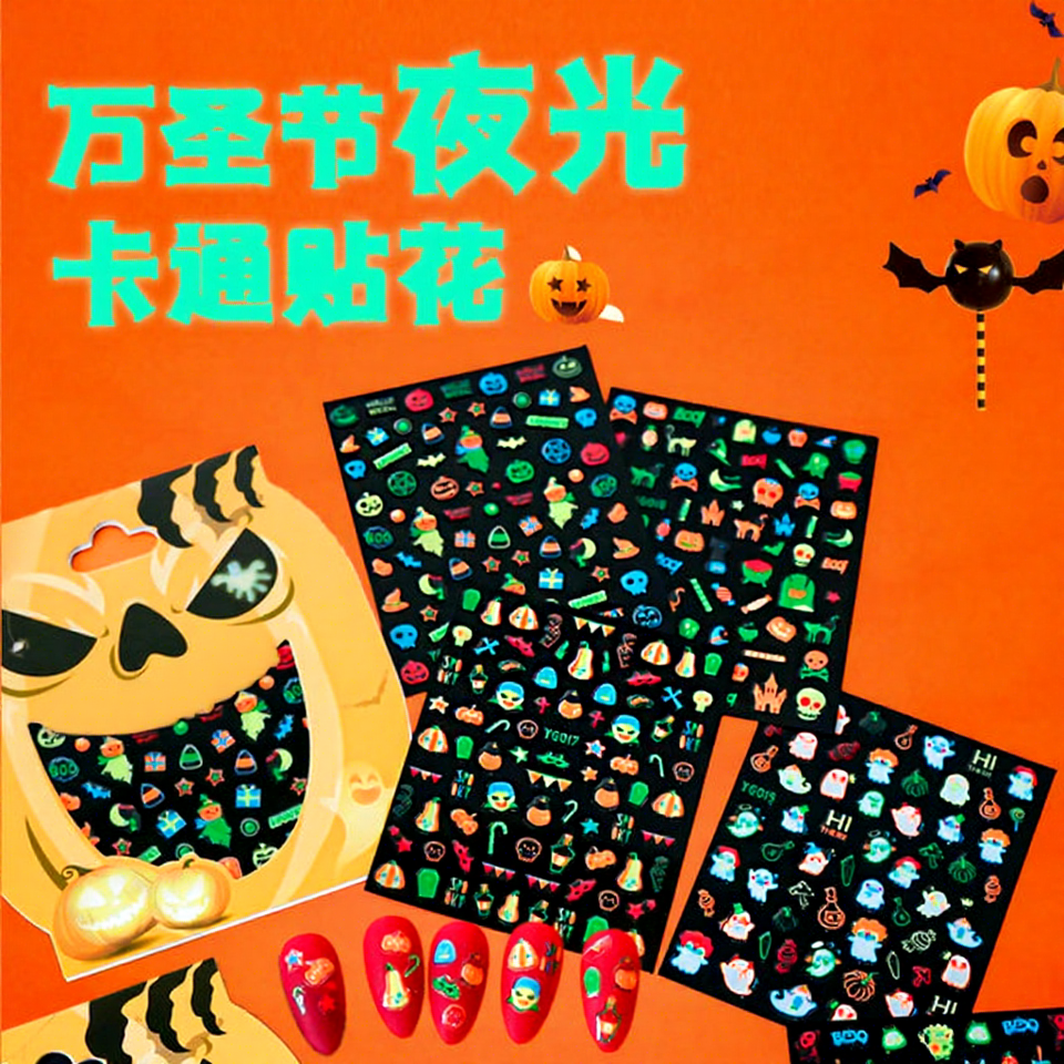 สติกเกอร์ติดเล็บ xiaohongshu ลายฟักทอง3D ชุดผสมฮาโลวีนแบบใหม่26ชิ้น