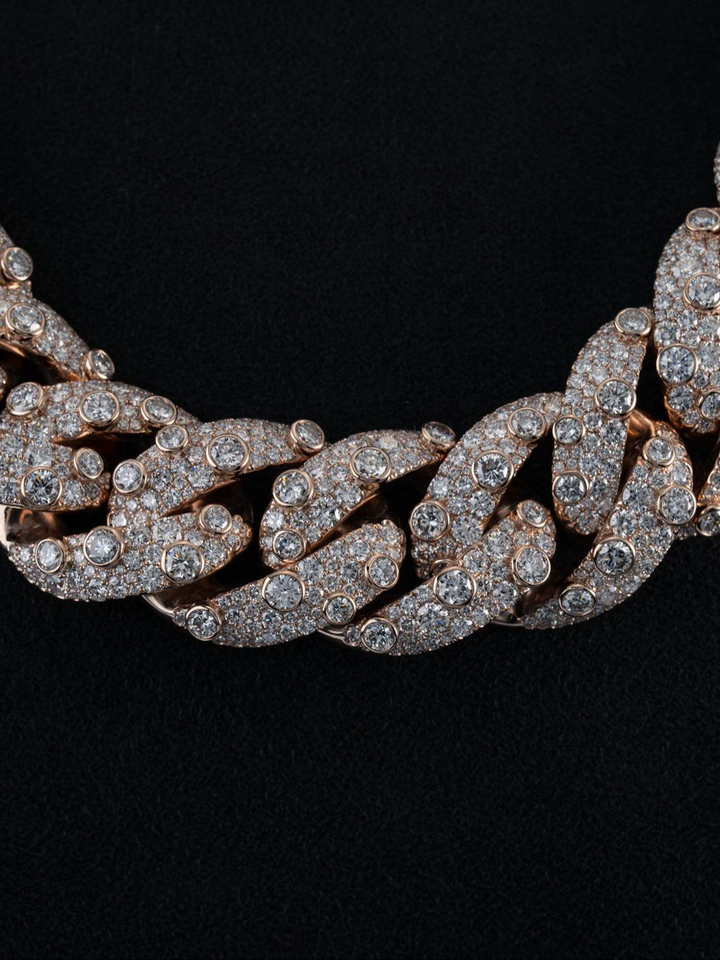 สร้อยคิวบันโมอิสซาไนต์ขนาด 26 มม. เงินแท้ 925 ประดับเพชร