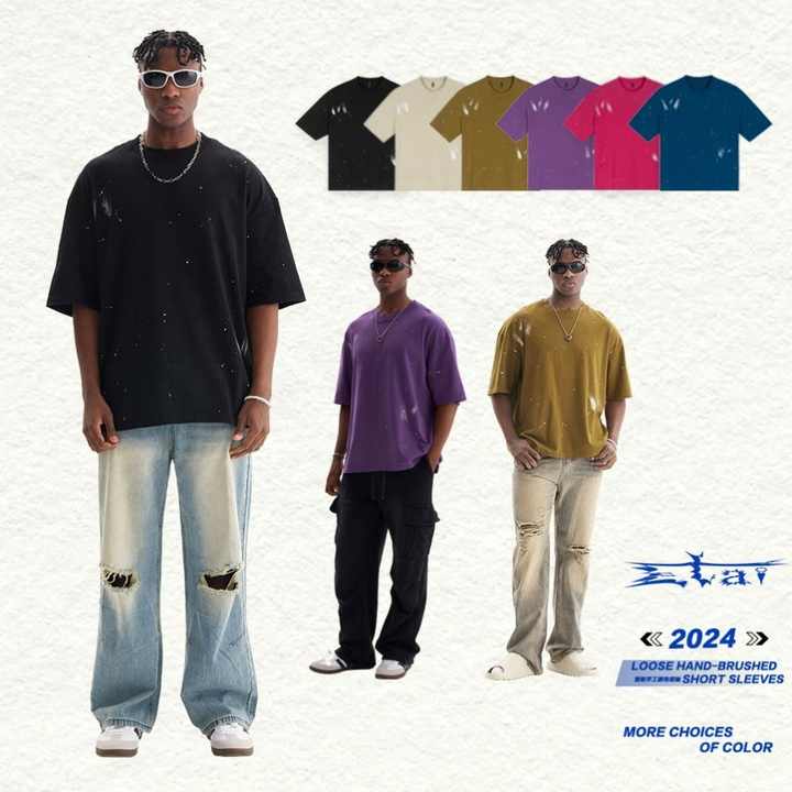 เสื้อยืดผู้ชายผ้าฝ้ายวินเทจฟอกสีได้ไซส์ใหญ่พิเศษใส่ได้ทั้งผู้ชายและผู้หญิง260Gsm หรูหรา