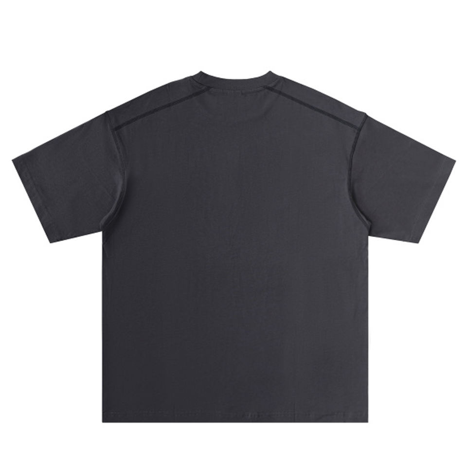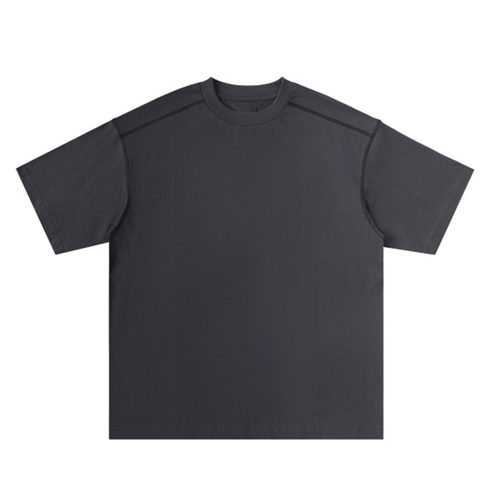 เสื้อยืดคอกลม 260 กรัม ผ้าคอตตอนเจอร์ซีย์ ทรงบ็อกซี่ สไตล์วิทยาลัย คลับ ตกแต่งด้วยเส้นด้ายสองเส้นตัดกัน และไหล่ตก