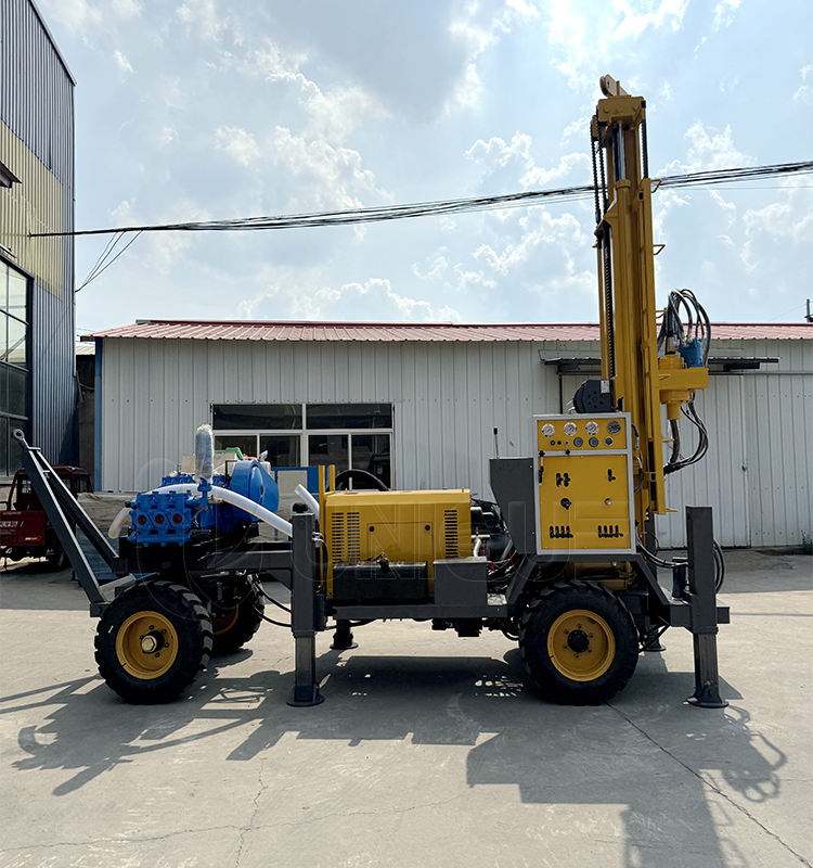 เครื่องเจาะบ่อน้ำขนาด260ม. แท่นขุดเจาะบ่อน้ำแบบติดตั้งบนรถพ่วงแบบพกพาสว่านขับเคลื่อนด้วยดีเซลสำหรับใช้ในชนบท/การก่อสร้าง