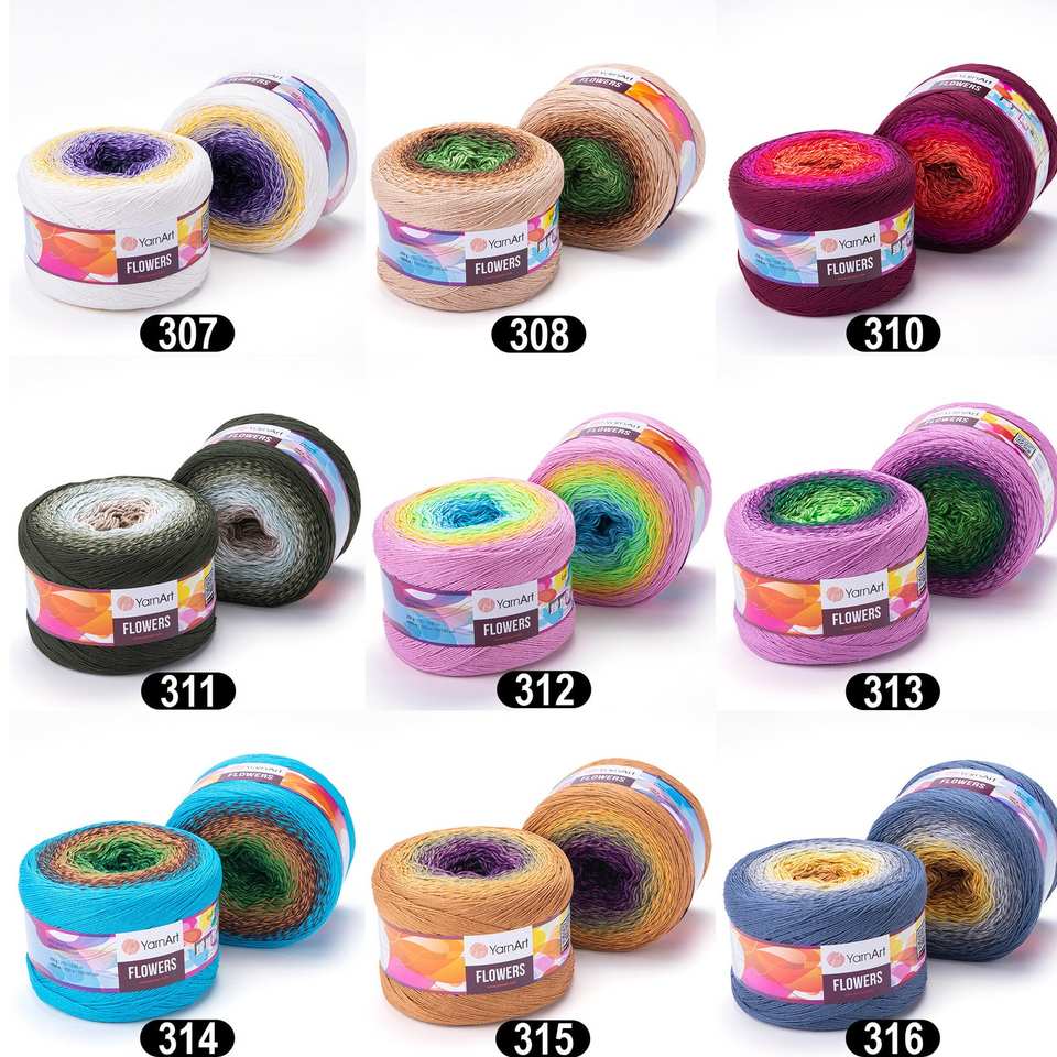 ไหมพรม Yarnart Flowers Gradient 264 เส้น ไหมพรมหลากสี ไหมพรมถักโครเชต์คุณภาพพรีเมียม ไหมพรมไล่สีรุ้งนุ่ม