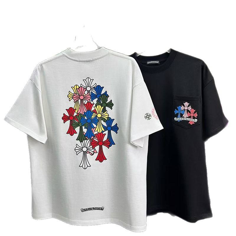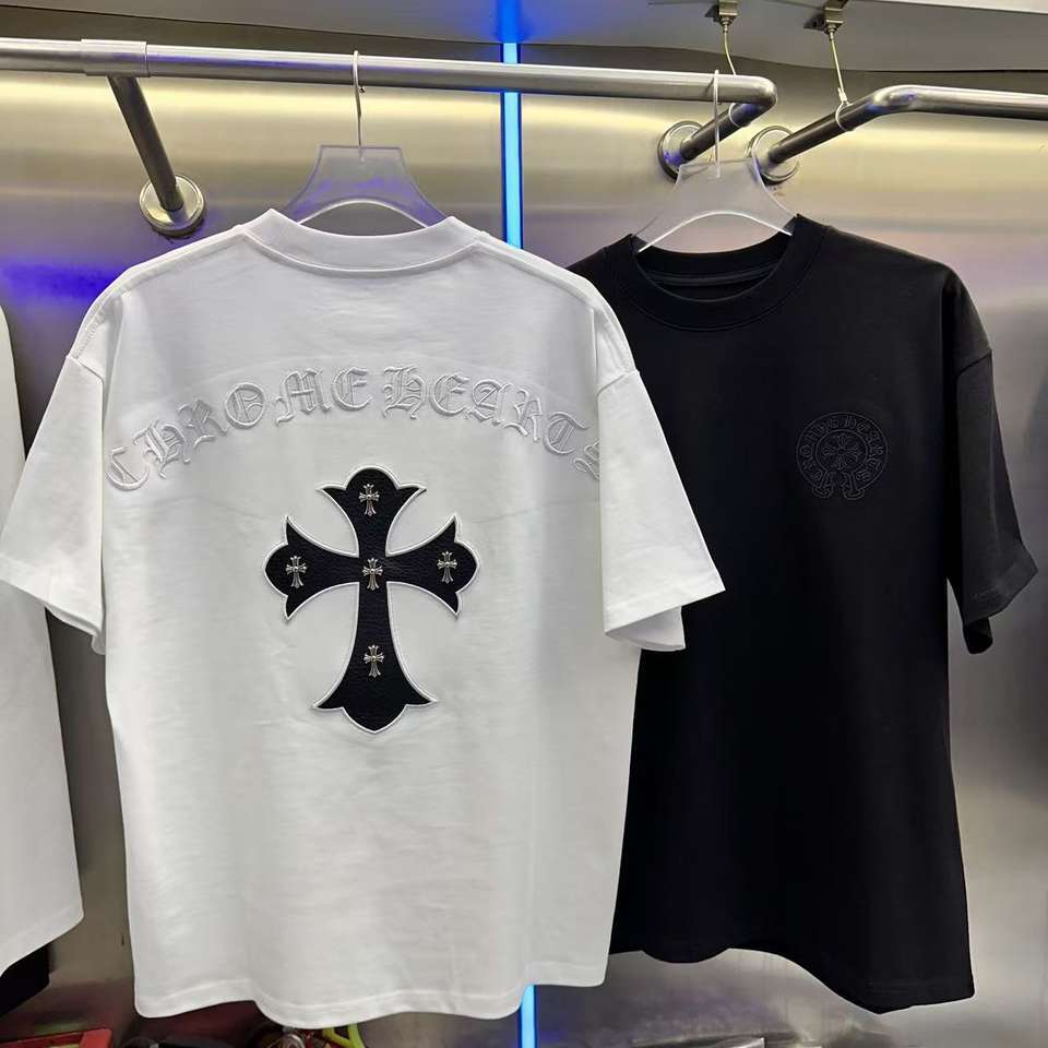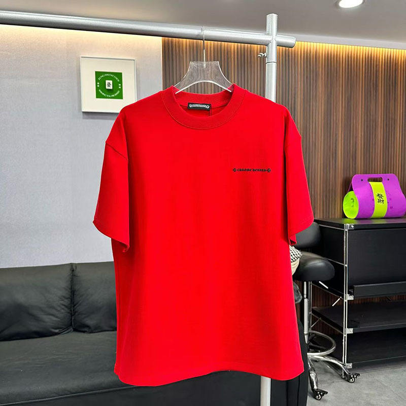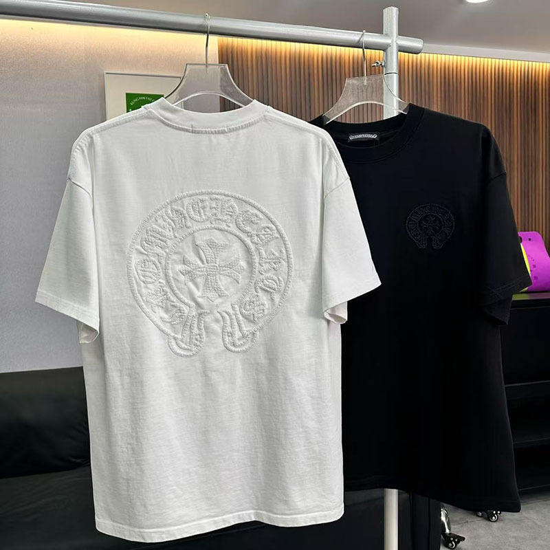 เสื้อยืดแขนสั้นคอตตอนแท้ทรงหลวมสไตล์ลำลองปักลายเรขาคณิตโลหะแบบหนา รุ่น 26SS สำหรับทุกเพศ