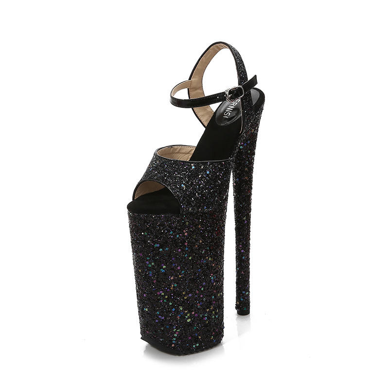 รองเท้าส้นสูงแบบเปิดนิ้วเท้าสำหรับฤดูร้อน ขนาด 26 ซม. พื้นรองเท้าแบบแพลตฟอร์ม วัสดุแก้ว เหมาะสำหรับเต้นโพลแดนซ์ ไซส์ใหญ่ แฟชั่นทันสมัย