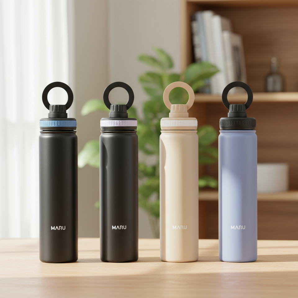 กระติกน้ำสุญญากาศสแตนเลสสตีลสองชั้นขนาด 26 ออนซ์ ดีไซน์สไตล์นอร์ดิก ฝาปิดกันรั่วพร้อมหูจับรูปตัว O เก็บความเย็นได้นาน 24 ชั่วโมง
