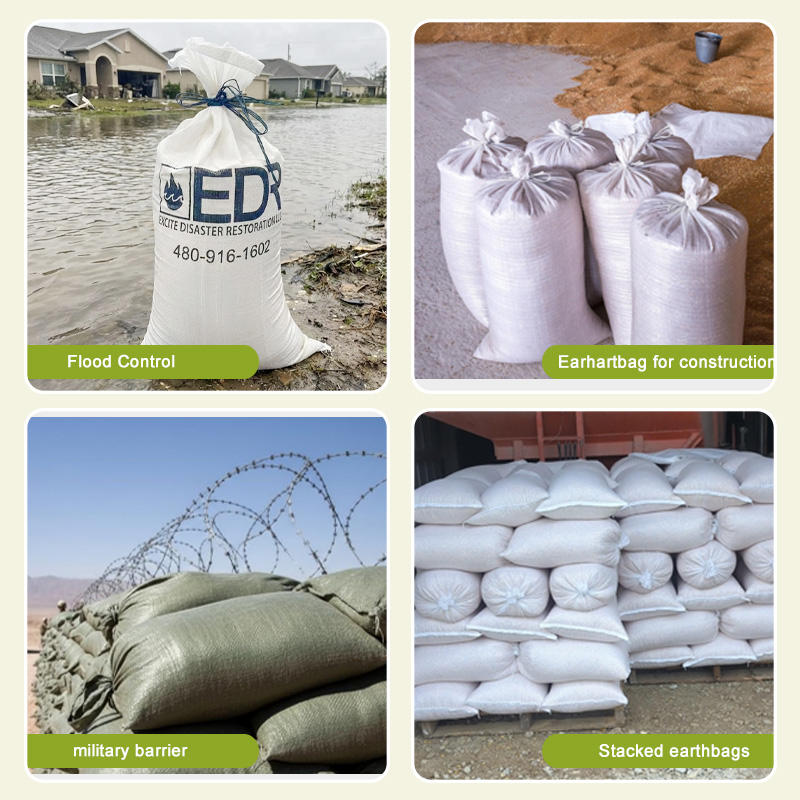 กระสอบทรายกันน้ำขนาด 26x14 นิ้ว สำหรับงานหนัก 25 กก. ผลิตจากโพลีโพรพิลีนทอ ทนทานต่อรังสียูวี สำหรับกั้นน้ำในกรณีฉุกเฉิน