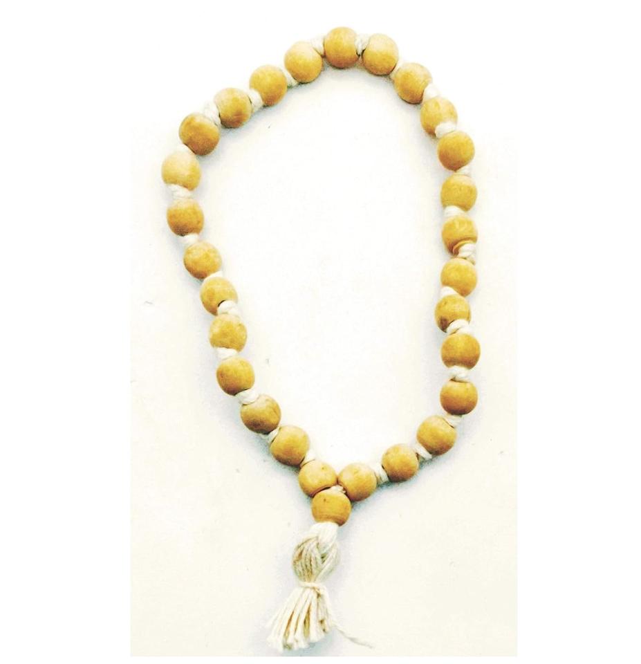 27 + 1 (ลูกปัดใหญ่) Holy Tulsi Mala สำหรับใส่สวดมนต์ Mantra Puja unisex ไม้โหระพาสีขาว