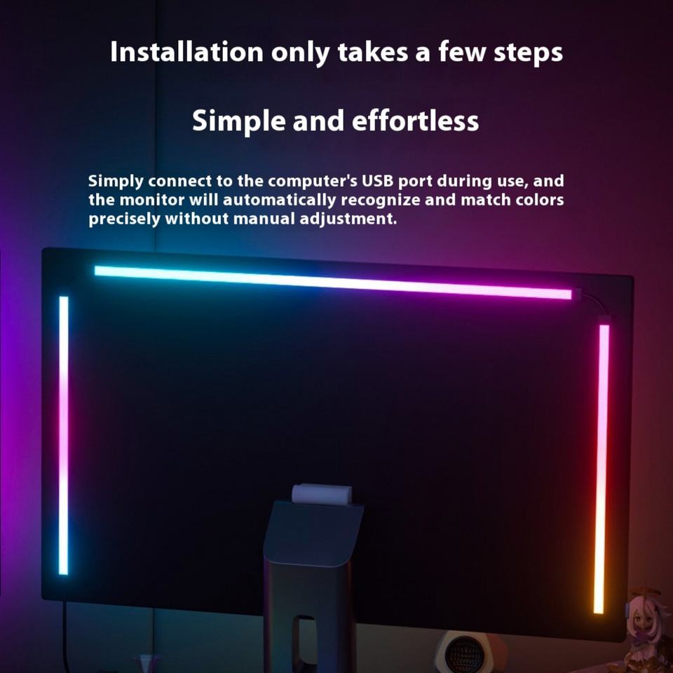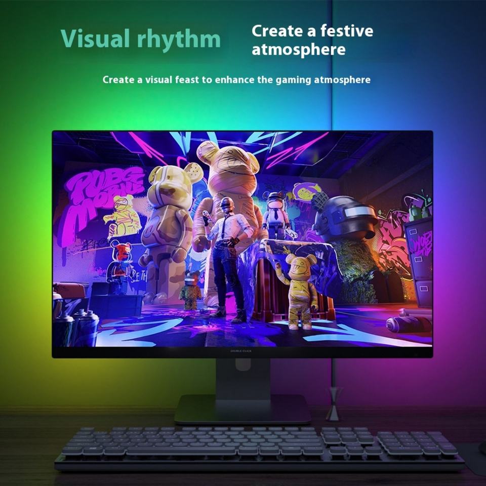 ไฟ LED แถบแสงพื้นหลังจอคอมพิวเตอร์ขนาด 27 32 นิ้ว สำหรับทีวี พีซี ซิงโครไนซ์กับหน้าจอ RGB สมาร์ท DIY ตกแต่งสร้างบรรยากาศสำหรับเกมและวันหยุด