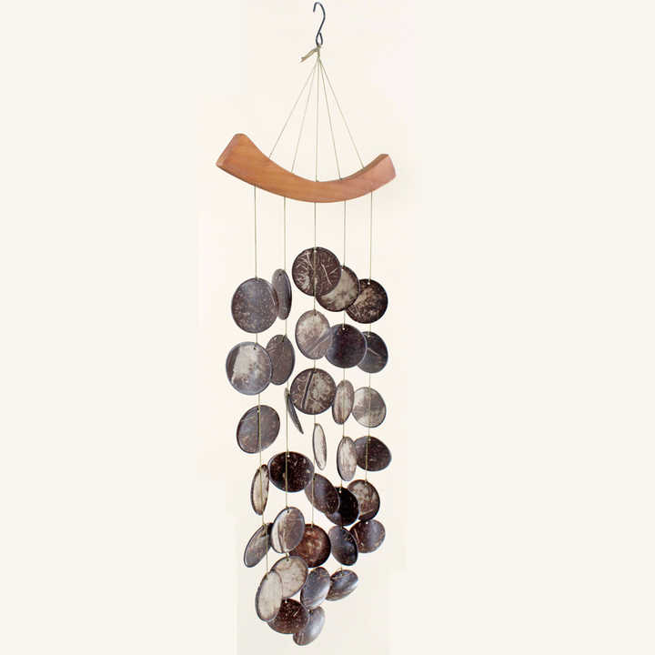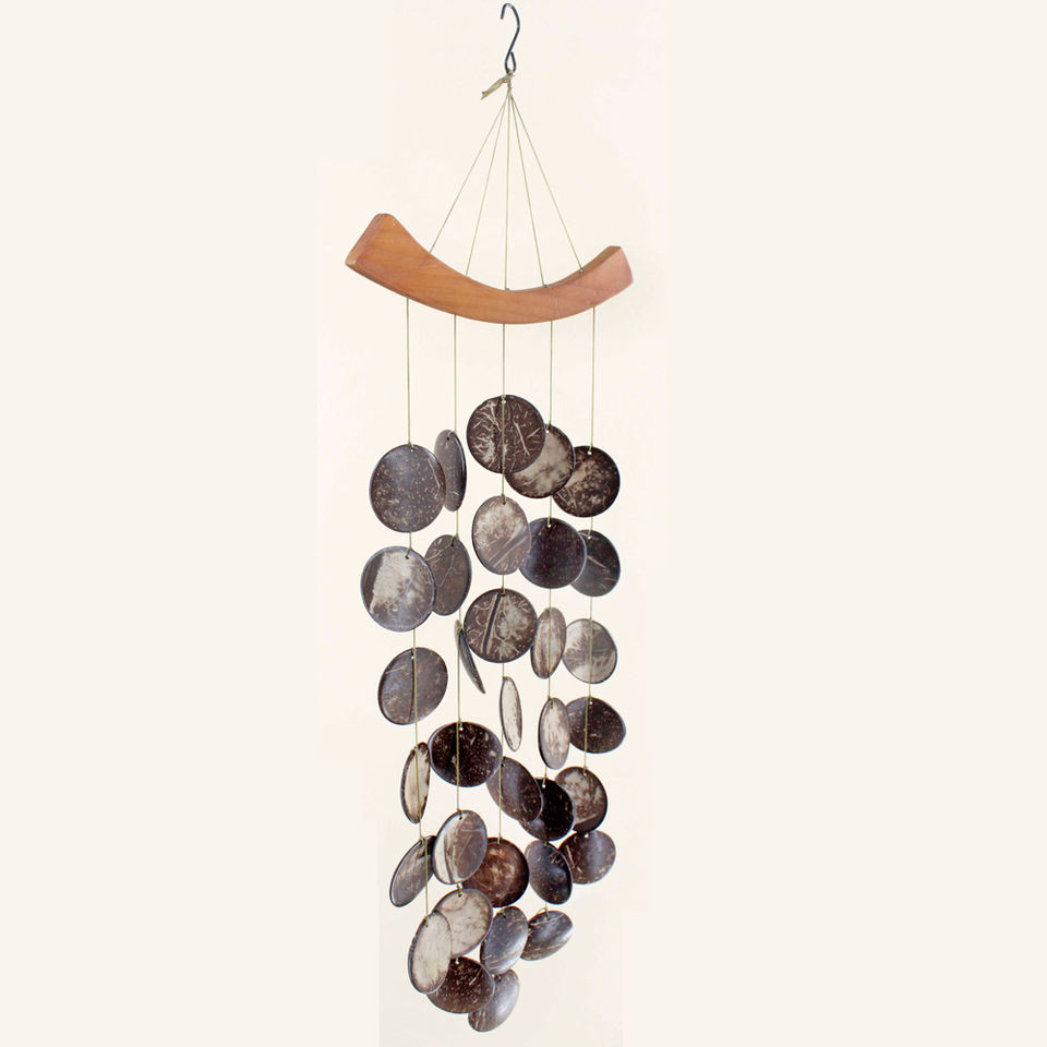 กระดิ่งลมทำมือจากกะลามะพร้าว 27.5 ซม. เคลือบเงา กันน้ำ เหมาะสำหรับตกแต่งสวน ระเบียง ลานบ้าน และสวนหลังบ้าน