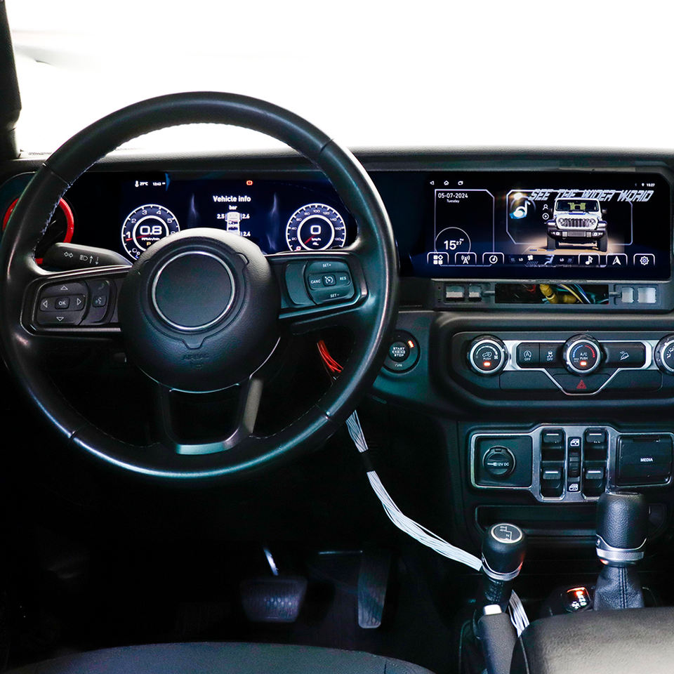 CarPlay + แผงควบคุมดิจิตอล27 ''สำหรับ JEEP wrangle JL 2018-2021วิทยุติดรถยนต์ระบบนำทาง GPS เครื่องเล่นวิดีโอมัลติมีเดียหน้าจอสัมผัสคู่แบบ HD