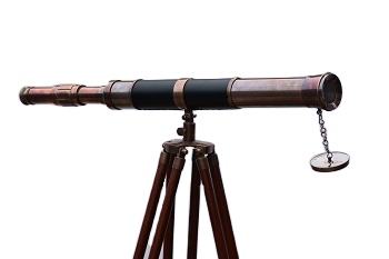 กล้องโทรทรรศน์หนังทองเหลืองโบราณและสีดําขนาด 27 นิ้วพร้อมขาตั้งกล้องพื้นไม้ผจญภัยกลางแจ้ง
