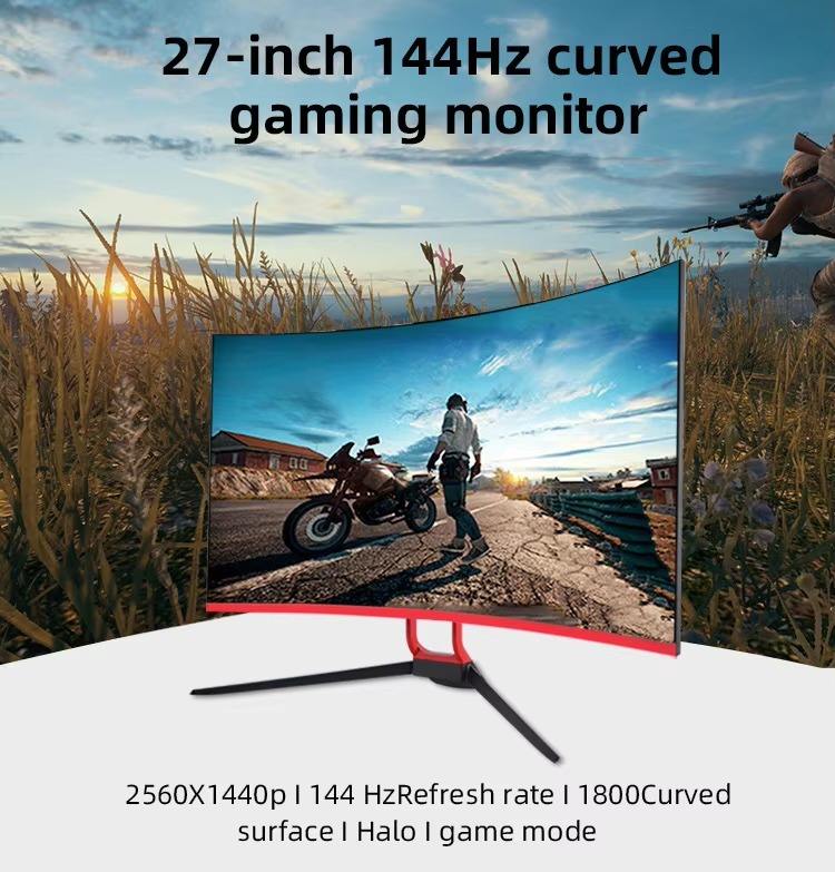 จอแสดงผล LCD สำหรับเล่นเกมขนาด2K โค้ง144Hz LED ความสว่าง500 27นิ้วฐานที่ขายดีที่สุด